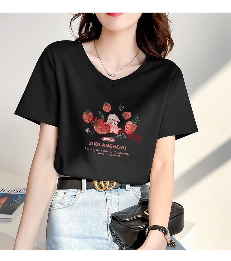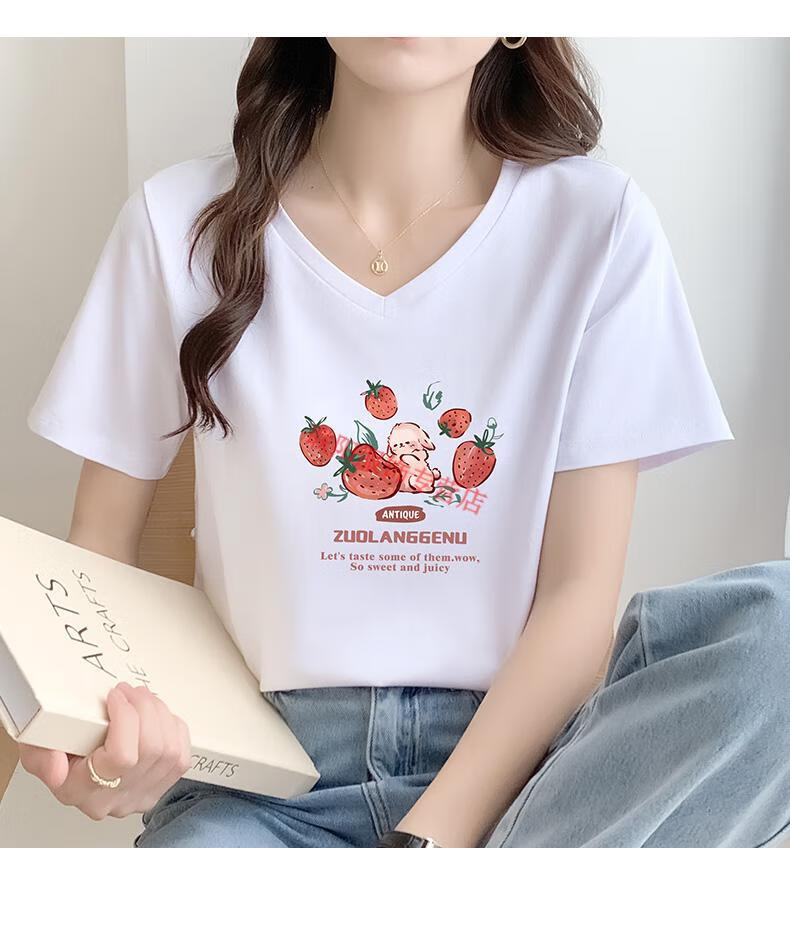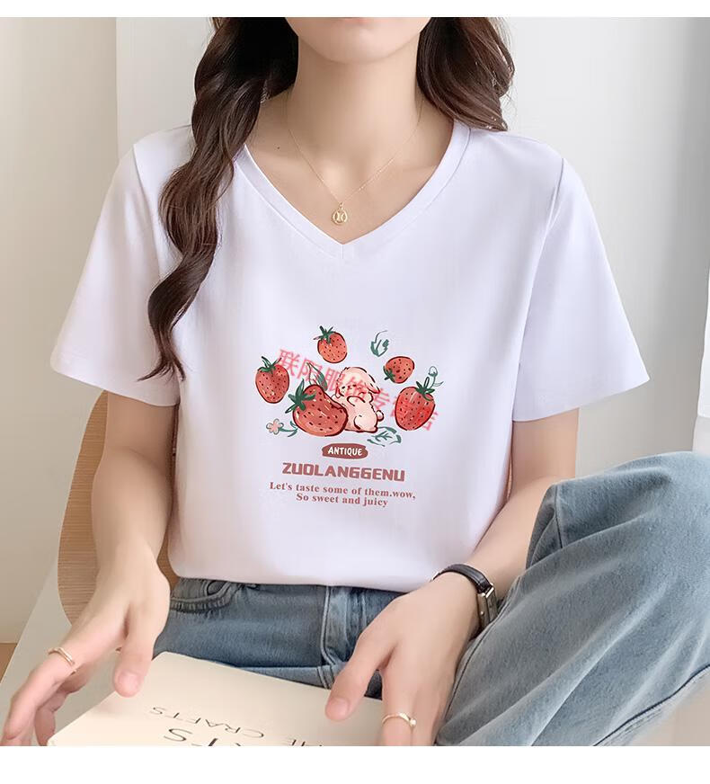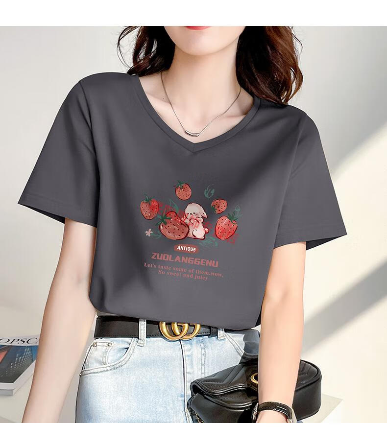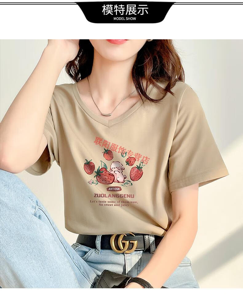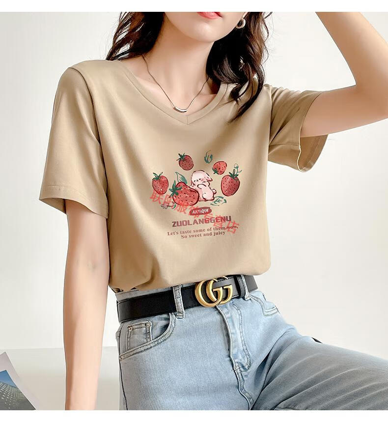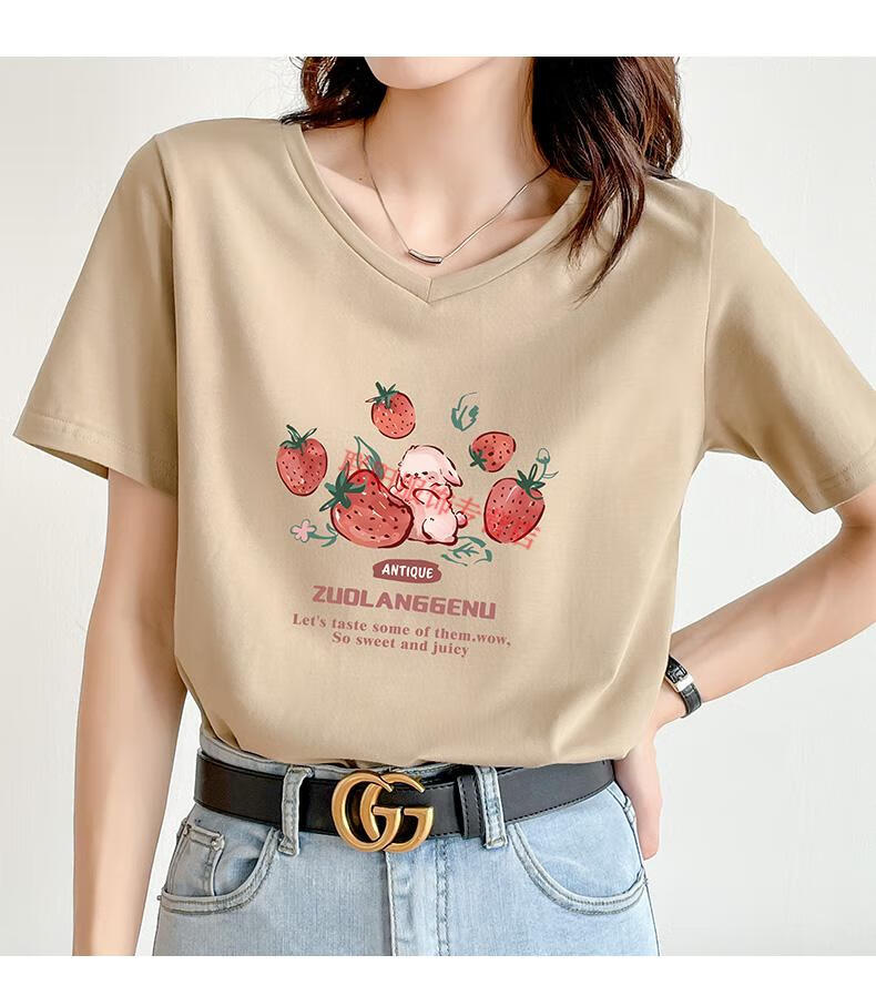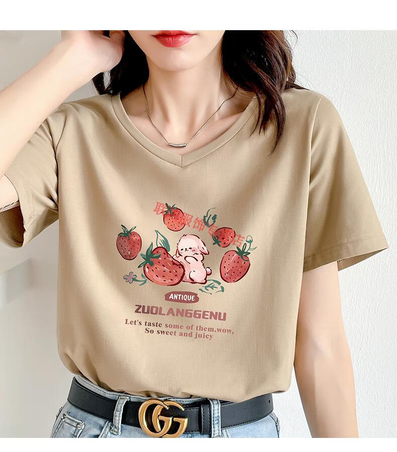 皮尔卡丹(pierre cardin)卡其色t恤女2025新款夏季短袖纯·棉正肩体·恤设计感兔子v领显瘦 卡其色 723 S