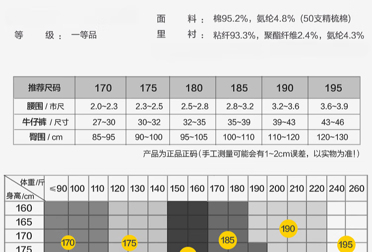 China (cm) 160-165/84-86 165-170 / 88-90 167-172 / 92-96 168-173 / 98-102 170-176 / 106-110
