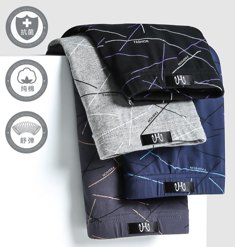 Hongtai Herren-Unterwäsche, Baumwolle, Boxershorts, Jungen, atmungsaktiv, große Größe, lockere, dünne Boxershorts 1349-2, Hellgrün/Grau, Lila/Dunkel, L 170/ Empfohlen 90-1b
