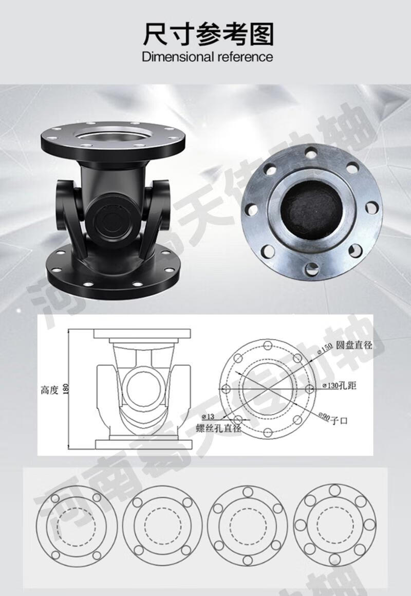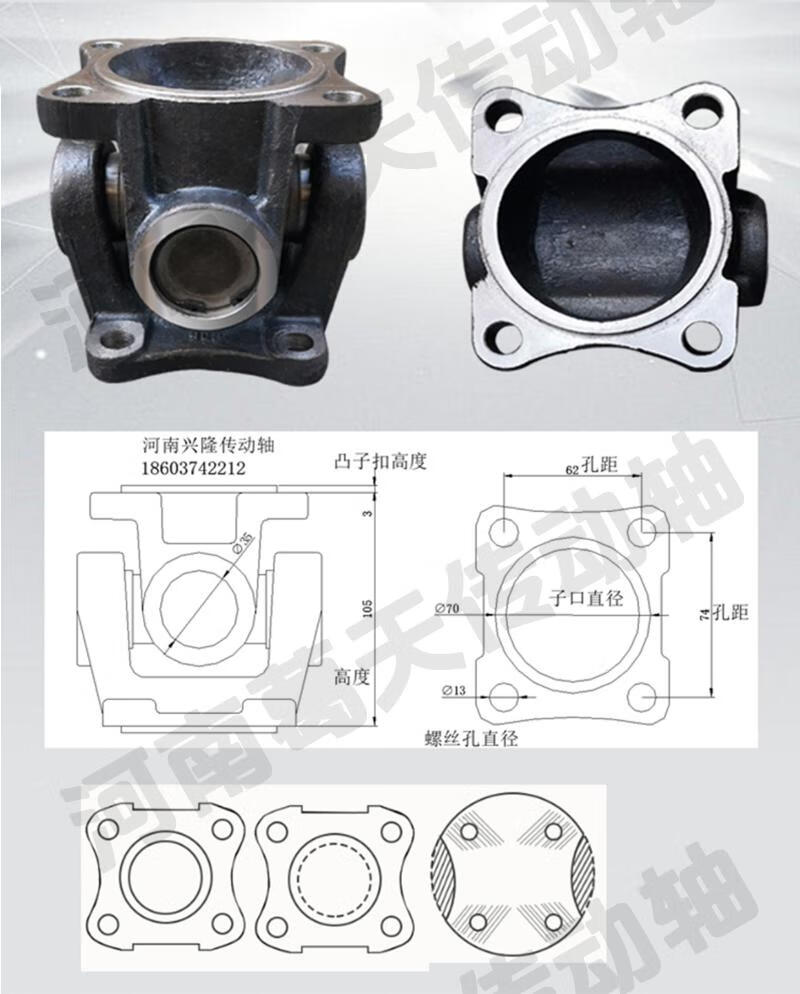 Qilicai Brida de acoplamiento universal Conjunto de conector de eje universal Eje de transmisión Conjunto de eje transversal de junta universal industrial 60 * 70 Placa cuadrada Tope exterior 60 alto 13590 grados