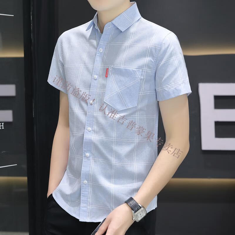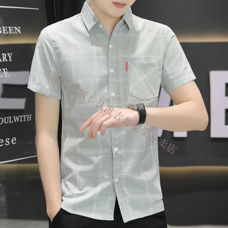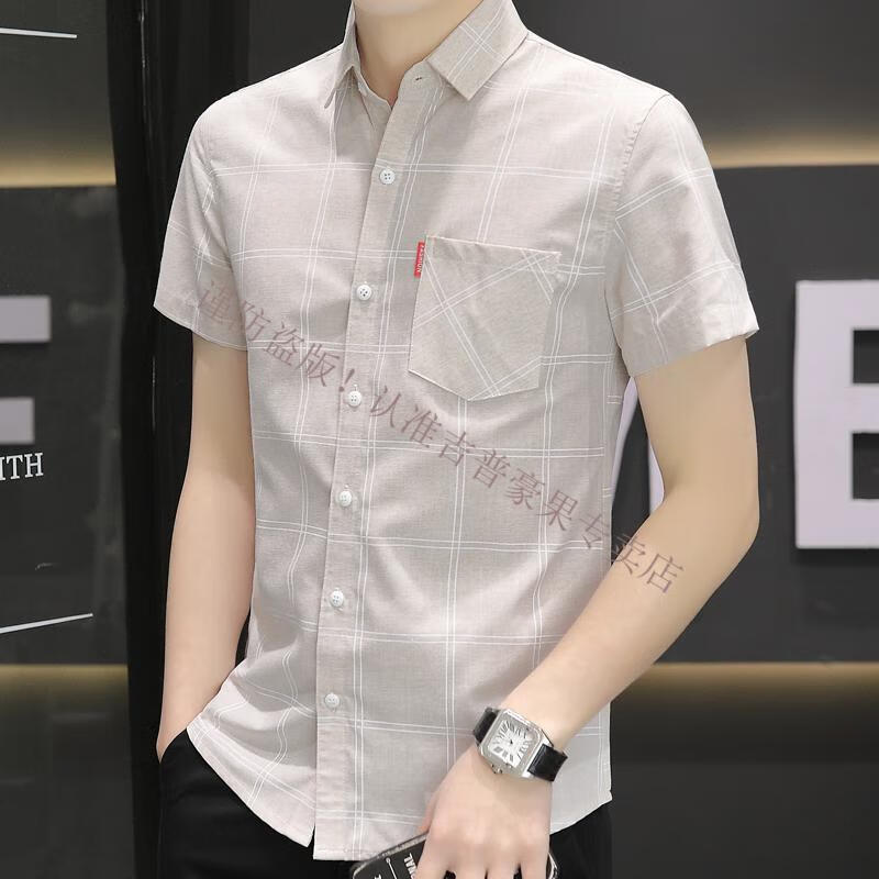 JEEP SPIRIT2025新款衬衫夏季款男士短袖格子衬衣休闲韩版修身上衣服 844卡其 M 80-104斤