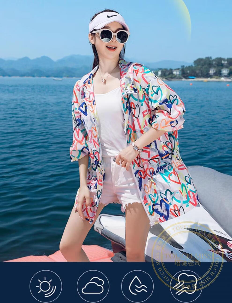 塔驰密司轻奢时尚洋气防晒衣女2025夏季新款宽松休闲轻薄透气上衣连帽外套 白色 M 80-120斤