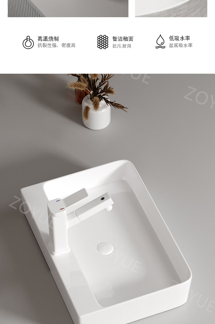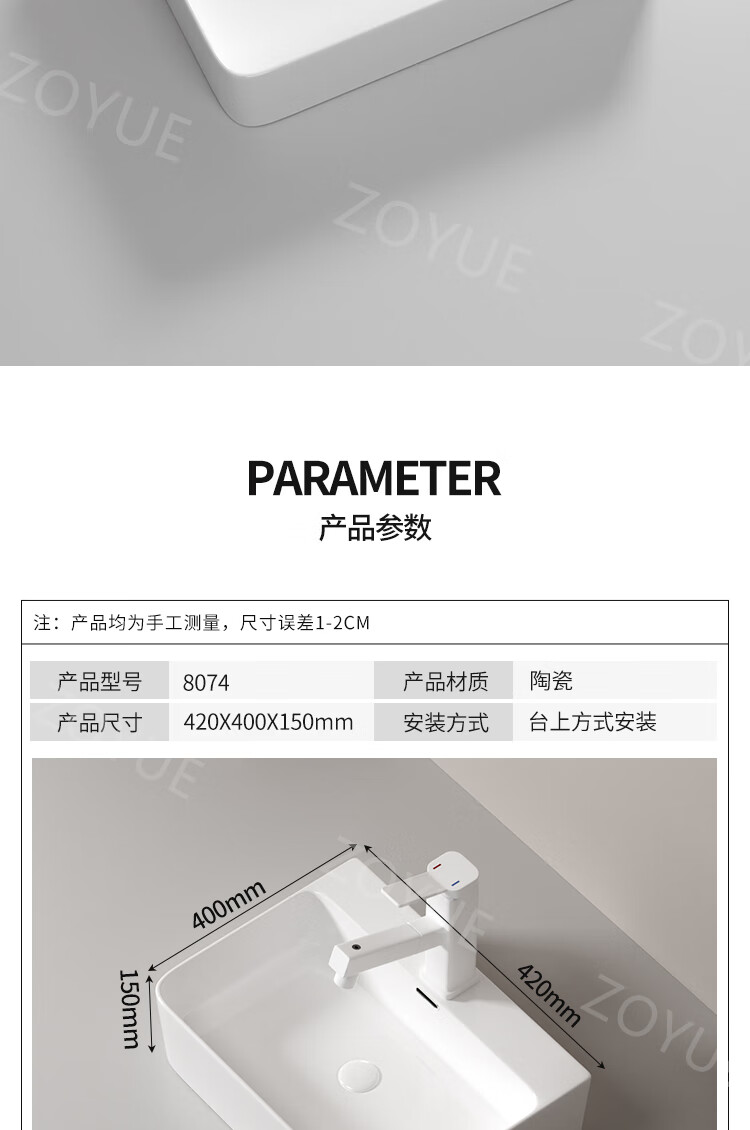 JOMOO (JOMOO) nouveau modèle officiel de lavabo de maison, lavabo au-dessus du comptoir, lavabo mural rectangulaire, lavabo en céramique, lavabo simple de salle de bain, 4837 modèles, 48*37*14 cm, offre spéciale