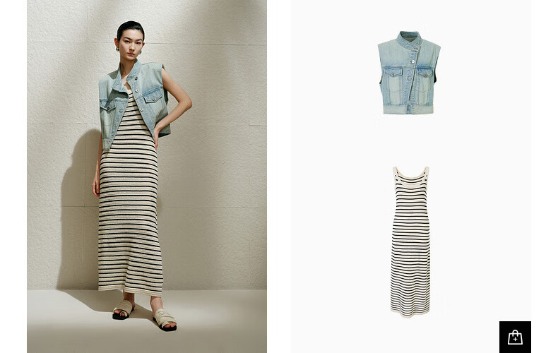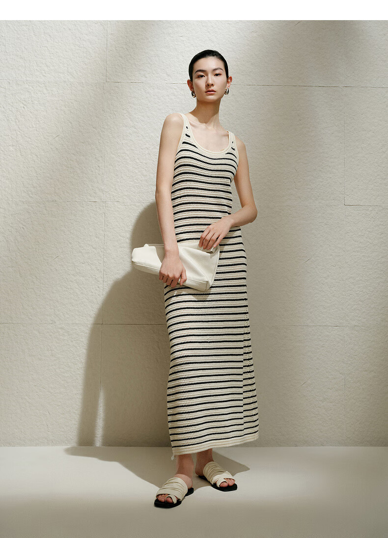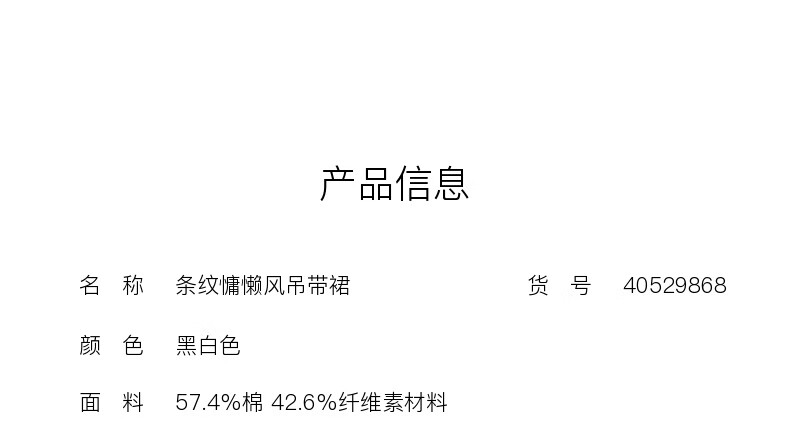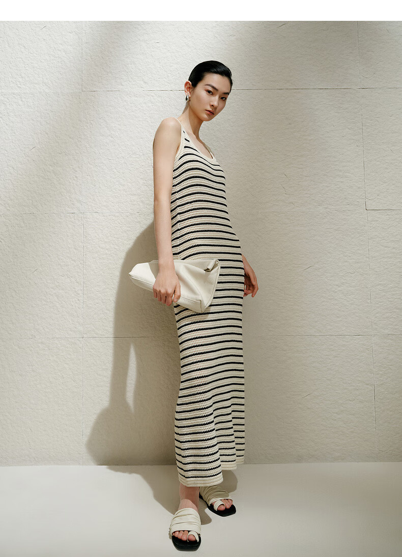 Enos Eshi shopping mall same style 2025 summer new striped lazy style suspender skirt dress long skirt 40529868 black and white S
