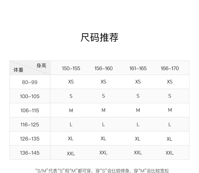 China (cm) 160-165/84-86 165-170 / 88-90 167-172 / 92-96 168-173 / 98-102 170-176 / 106-110