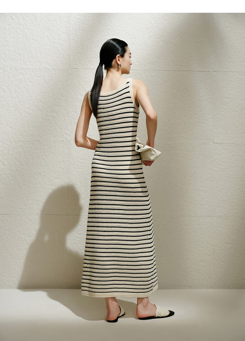 艾诺丝雅诗【商场同款】2025夏季新品条纹慵懒风吊带裙连衣裙长裙40529868 黑白色 S