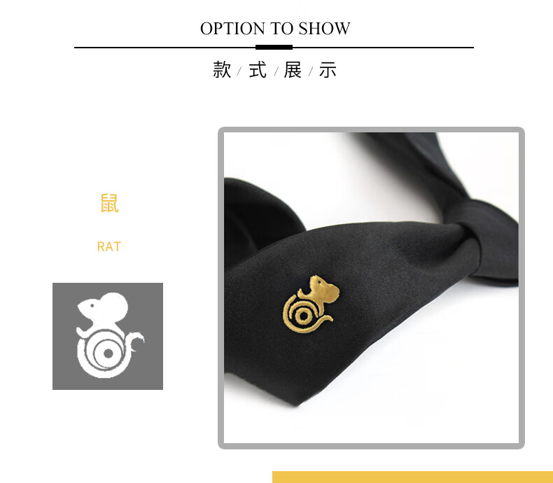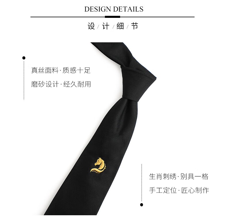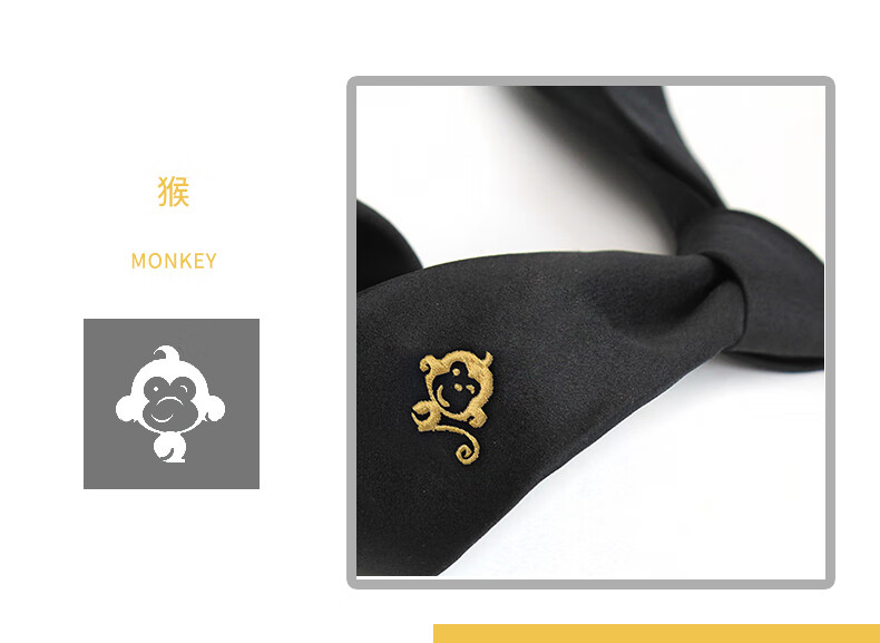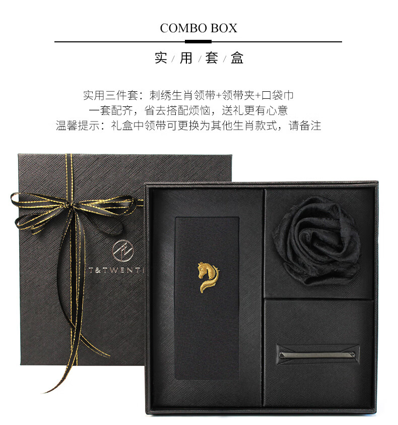 T&Twenties桑十二生肖刺绣领带男黑色送礼男士情人节礼物蛇年本命年 领带+领带夹+口袋巾_+礼套盒领