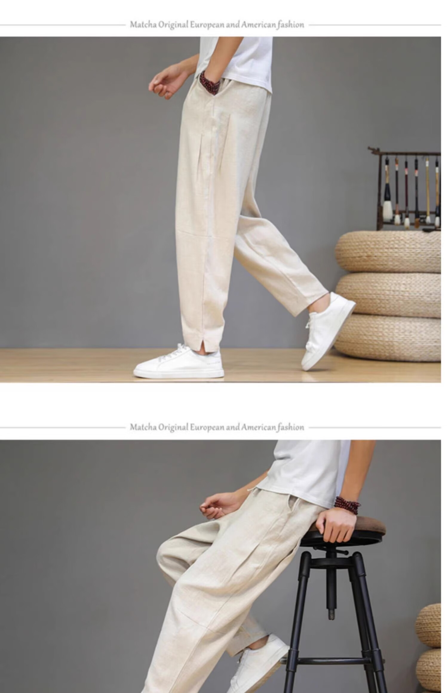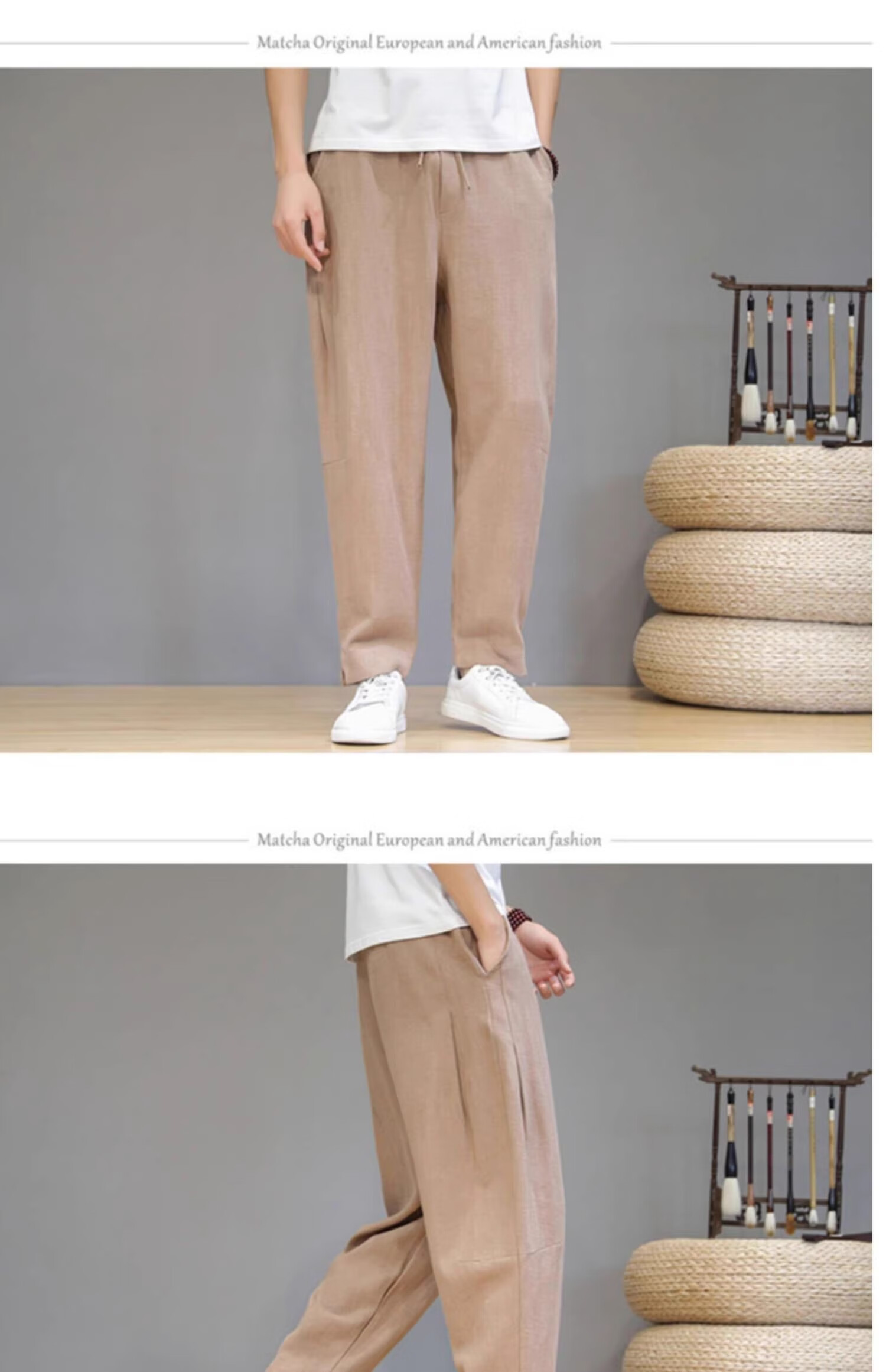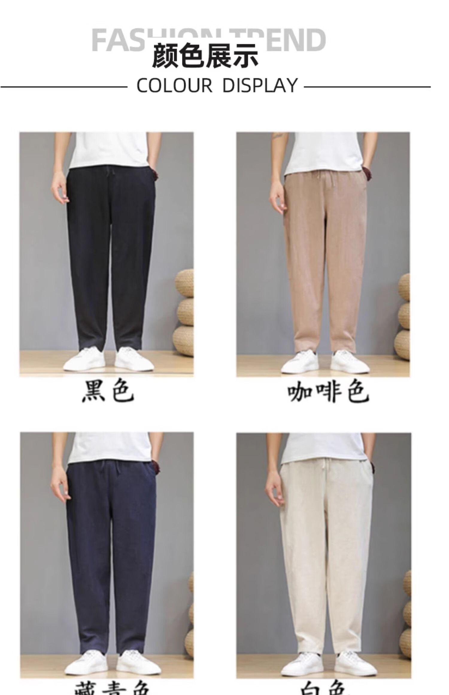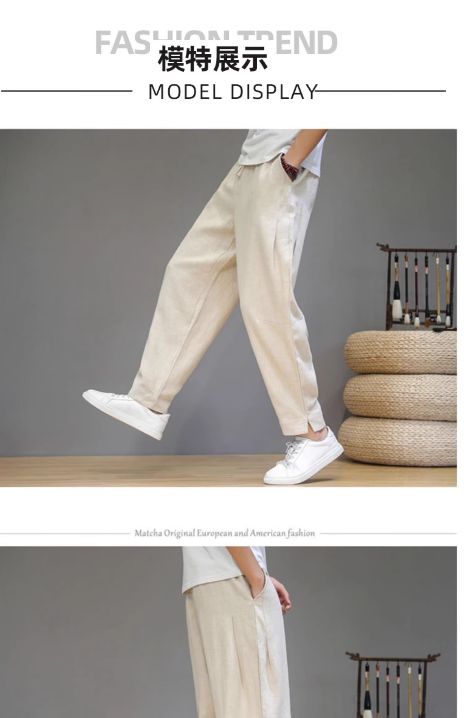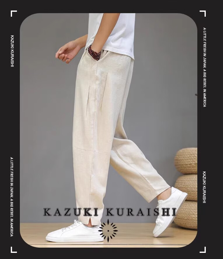 Cangishi Kazuki Cangishi Kazuki модные повседневные брюки мужские летние тонкие модные свободные льняные брюки большого размера универсальные брюки из хлопка и льна кремового цвета XL 140-160Jin Jin равен 0,5 кг