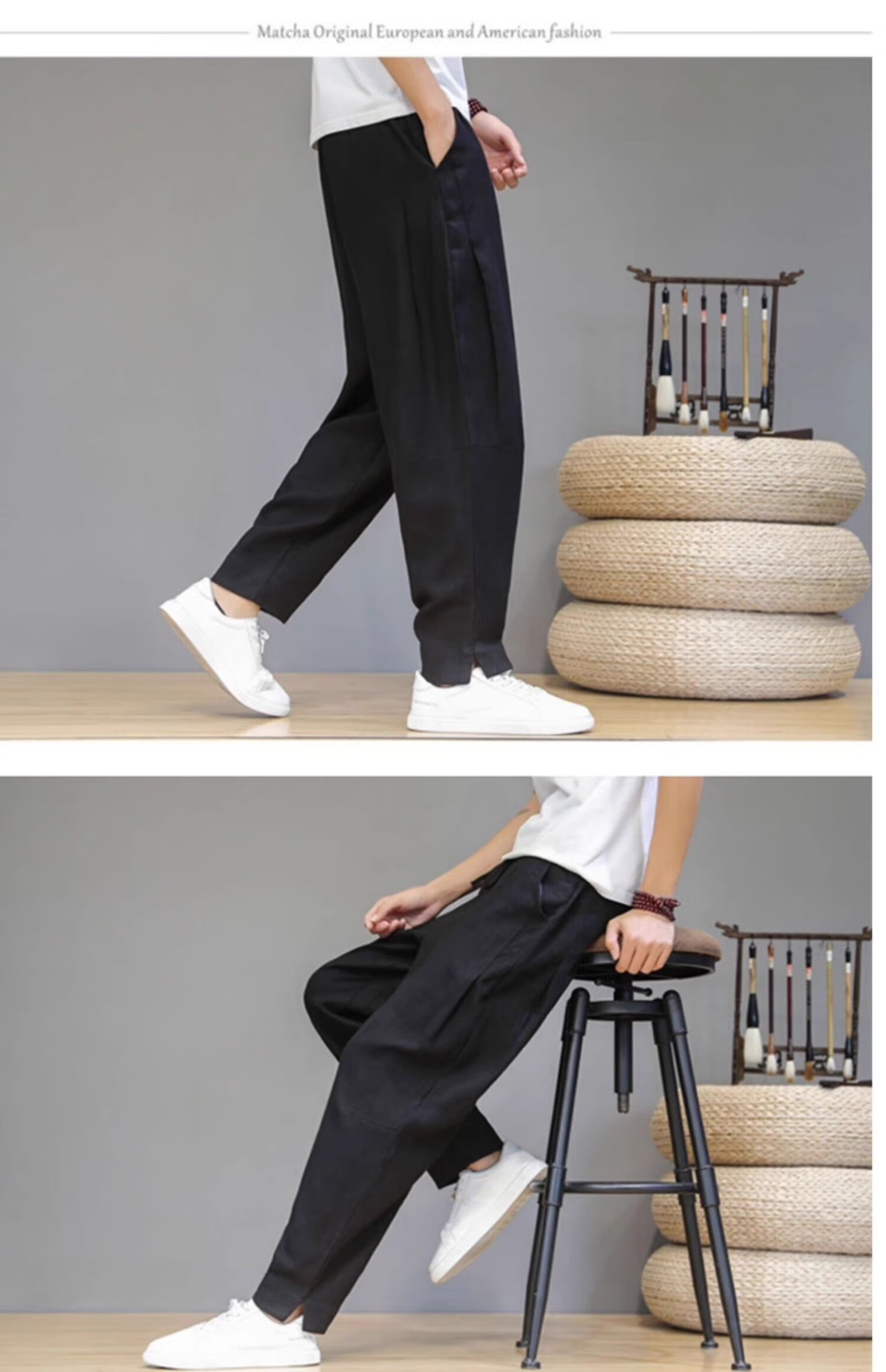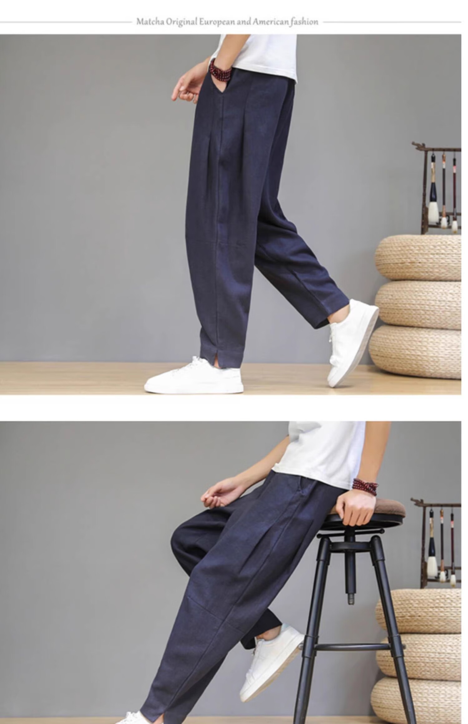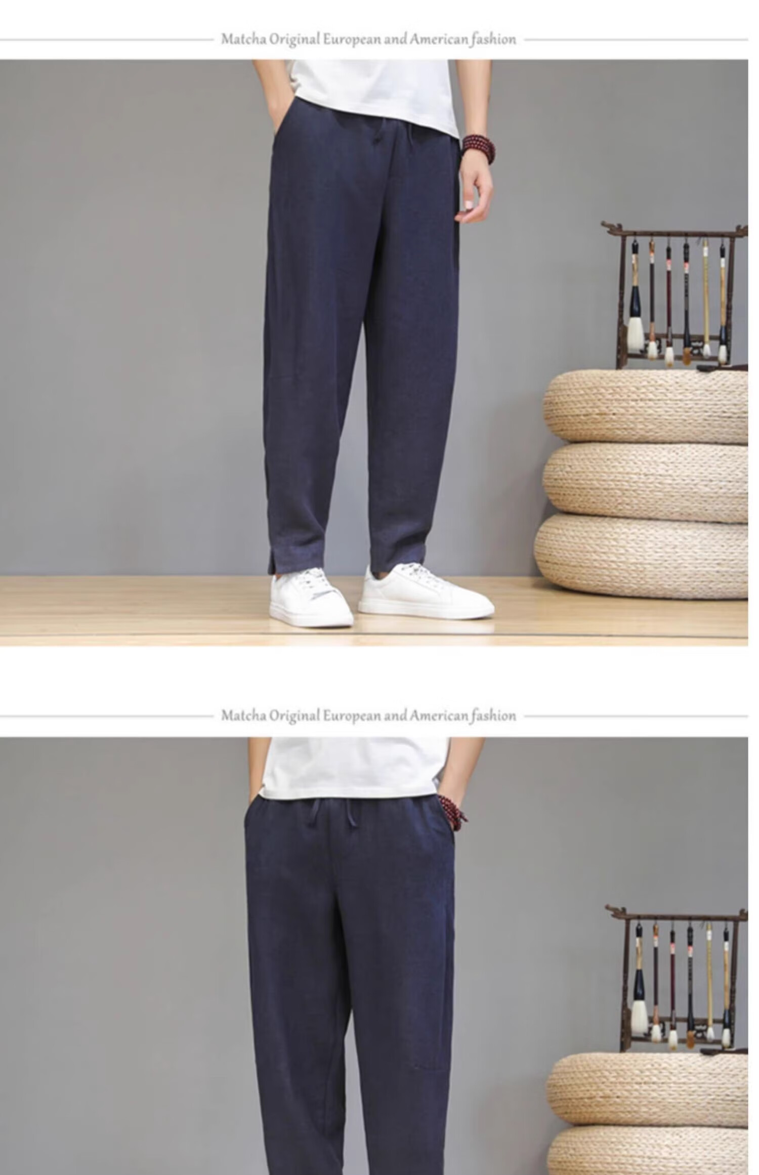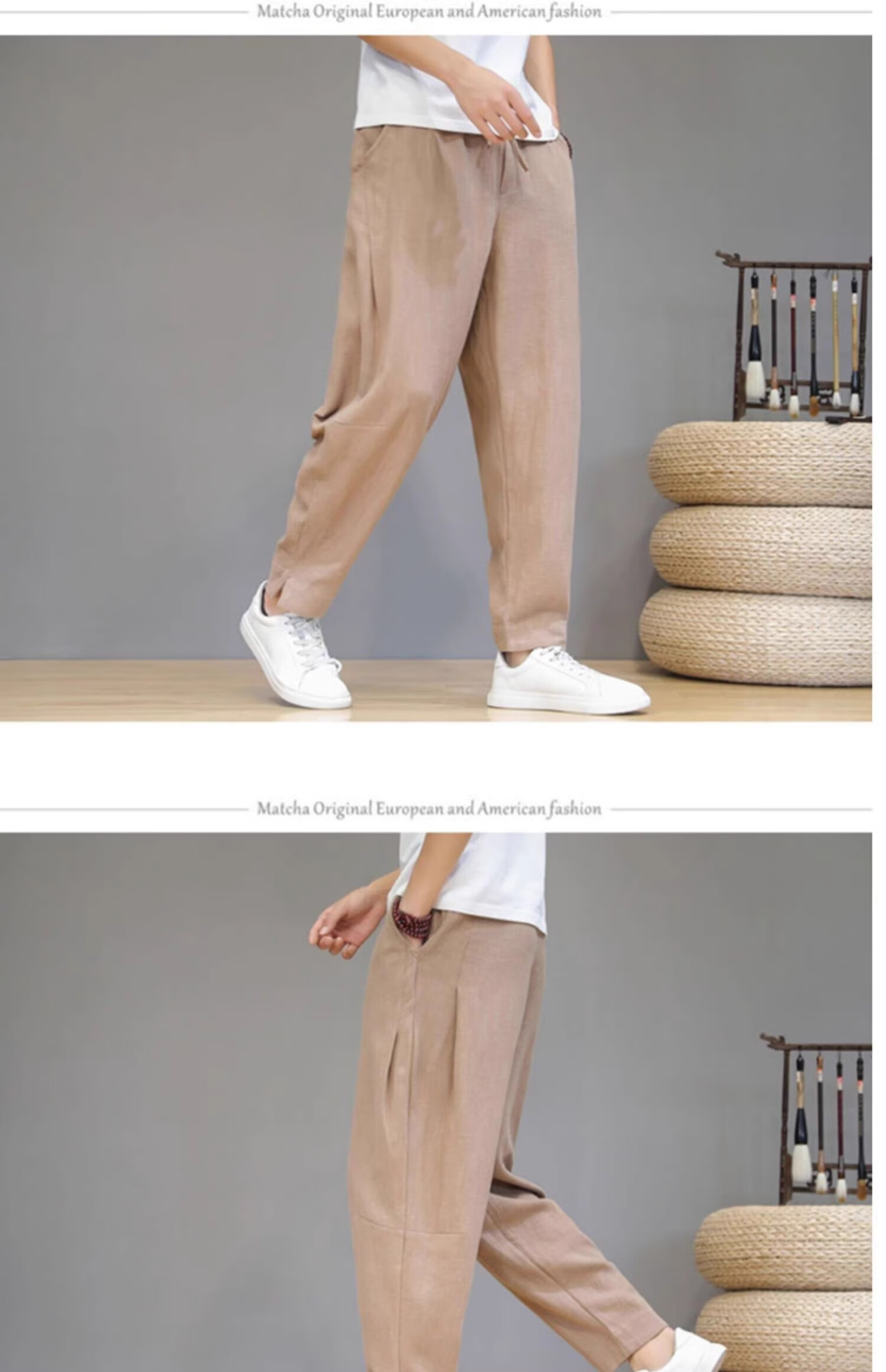 Cangishi Kazuki Cangishi Kazuki модные повседневные брюки мужские летние тонкие модные свободные льняные брюки большого размера универсальные брюки из хлопка и льна кремового цвета XL 140-160Jin Jin равен 0,5 кг