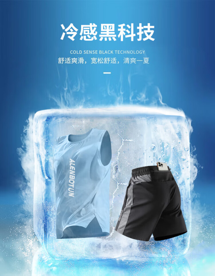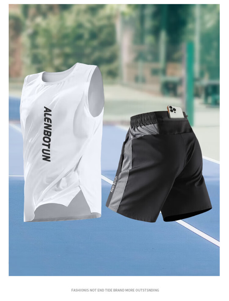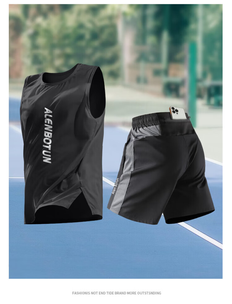 Alan Burton Laufsportanzug für Herren, Fitnesskleidung, Eisseide, schnell trocknende Weste, T-Shirt, professionelle Marathon-Trainingsshorts, Ausrüstung, zweiteilig, schwarz und blau, schnell trocknend, atmungsaktiv, XL 145–160 Jin Jin entspricht 0,5 kg