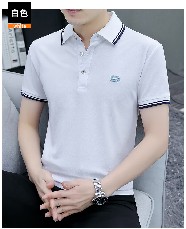 皮尔卡丹帅气男装带领短袖上衣夏季休闲青年小领翻领半袖t恤潮polo.衫 白色S5012 帅气新款 M 体重95-115
