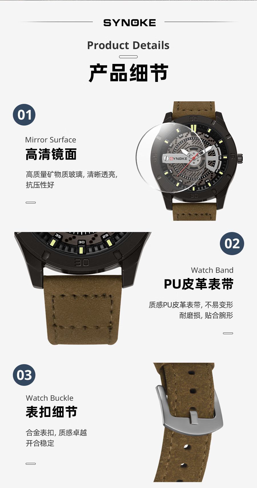 时诺刻男士手表轻奢石英腕表时尚皮革表带石英手表复古小众设计 6173军绿