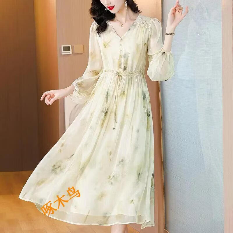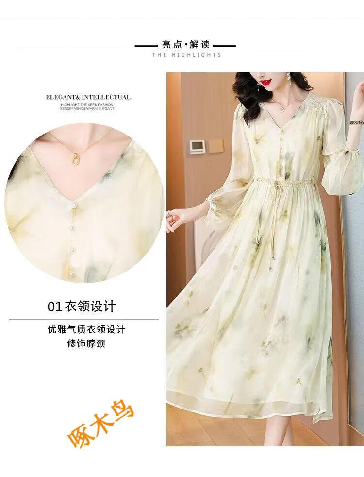 Pierre Cardin Vestido de seda de morera Falda de estilo occidental adelgazante floral dulce 2025 Primavera y verano Nuevo estilo 7372 Color M