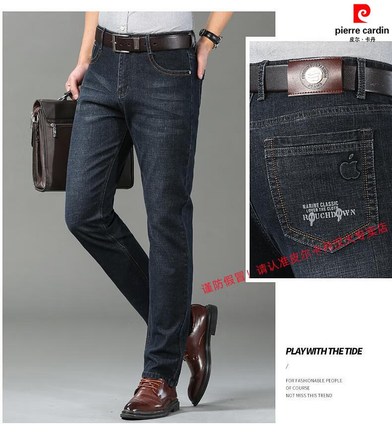 Pierre Cardin Sommer-dünne Herren-Jeans, lockeres gerades Bein, hohe Elastizität, tiefe hohe Taille, Business-Casual, modischer Trend, lange Hosen, 5155 Dunkelblau + 5155 Dunkelblau, 2 Paar, 28 Größe, Taille 2 Fuß 1