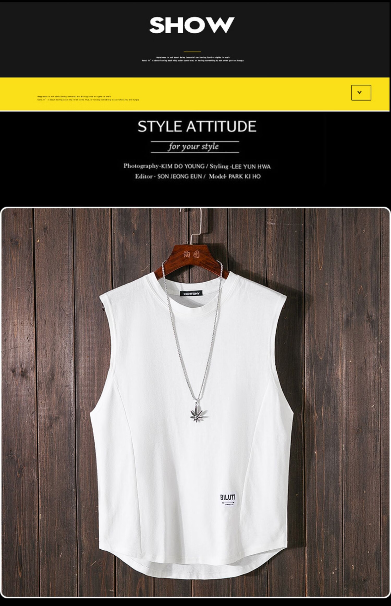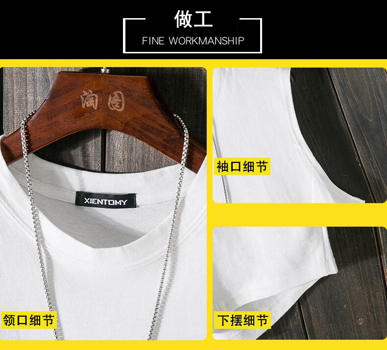 仓石一树仓石一树美式宽松坎肩背心男潮流运动无袖t恤男纯棉篮球健身上衣 白色 L