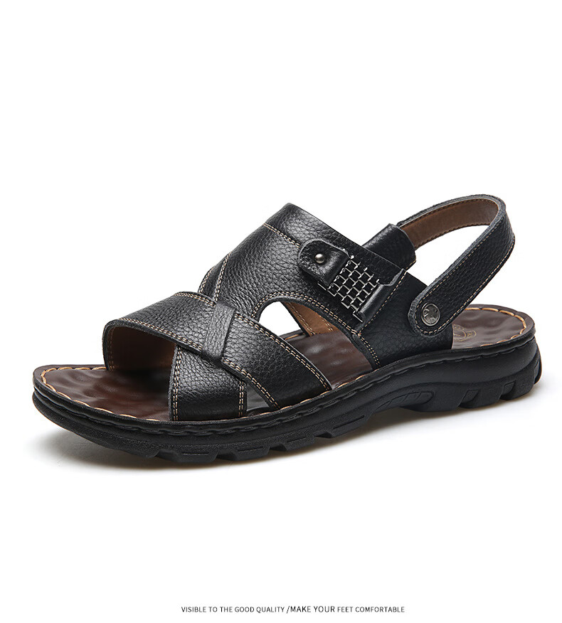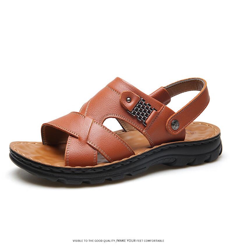 大东(dusto)2025新款头层牛皮男士凉鞋男真皮沙滩鞋休闲男鞋大码拖鞋 12129 黄棕色 38