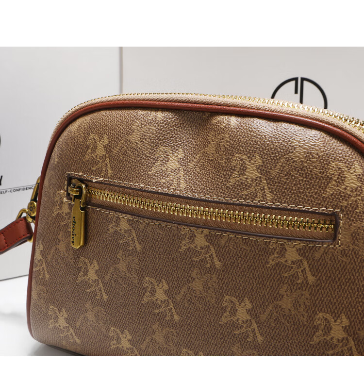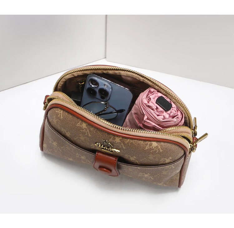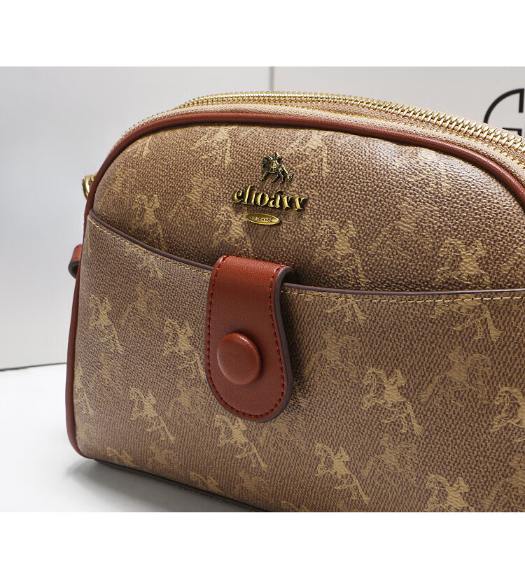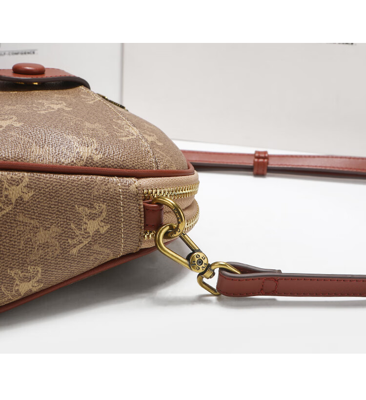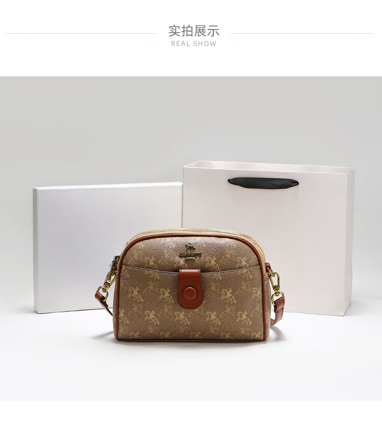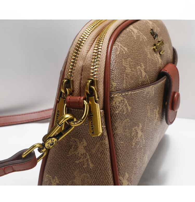 建功国际一线品牌轻奢进口2025新款单肩斜挎包休闲感老花贝壳包包女式 棕色香港品牌