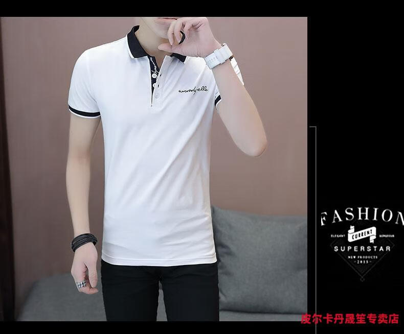 皮尔卡丹(pierre cardin)polo|衫短袖男夏季潮牌高端翻领T恤半袖潮流修身商务休闲上衣体恤 7029白色 M (约85-105斤可穿)
