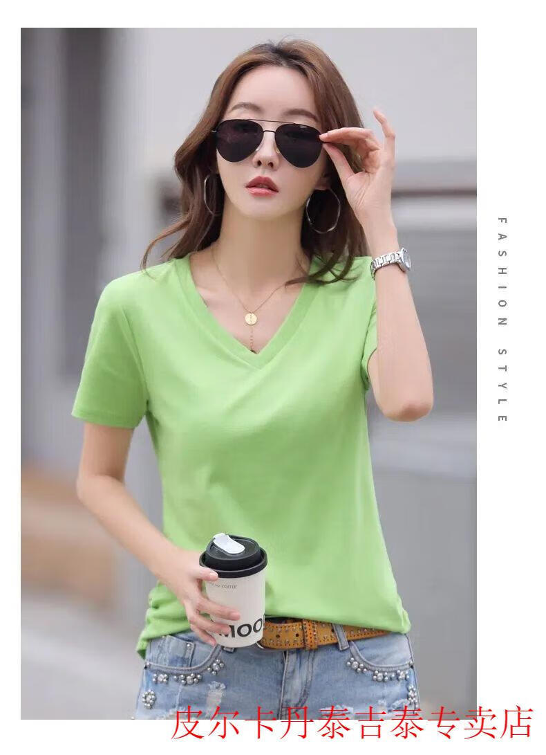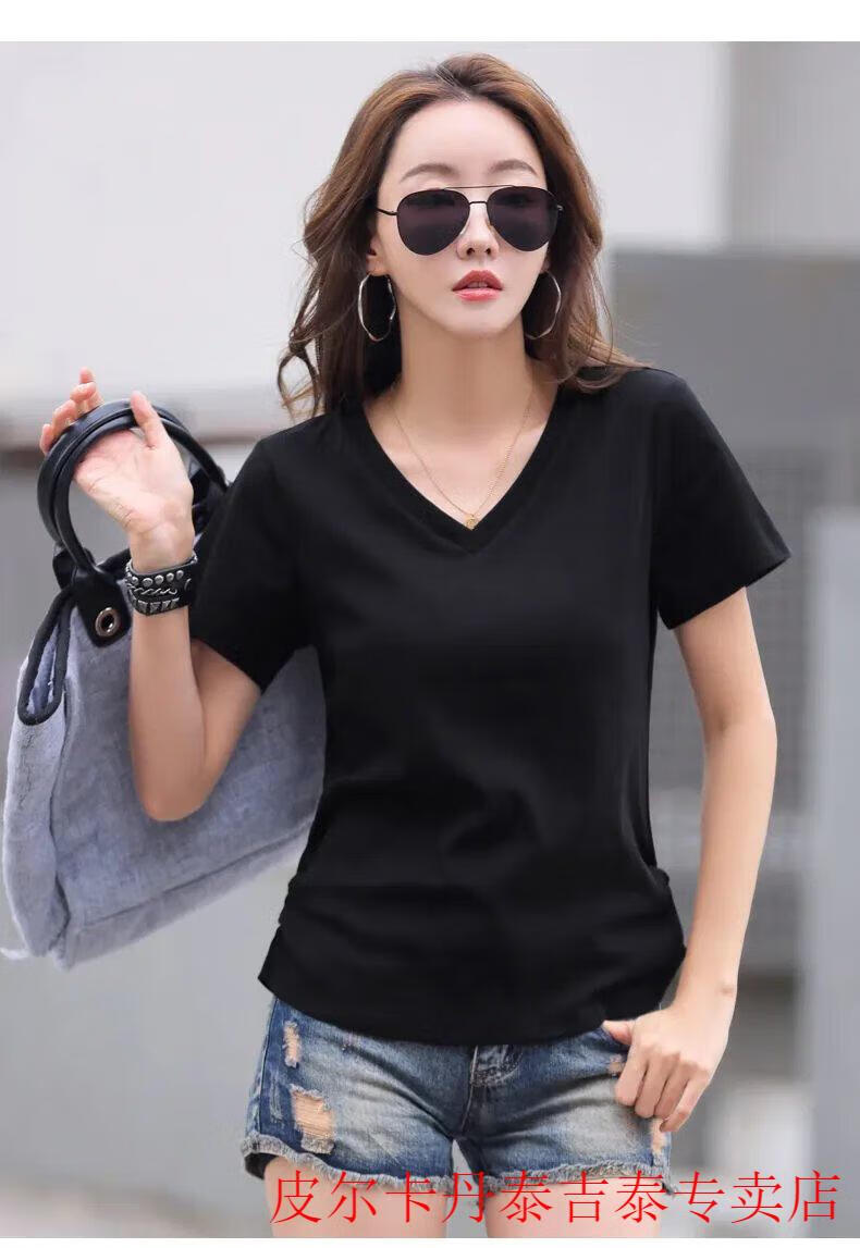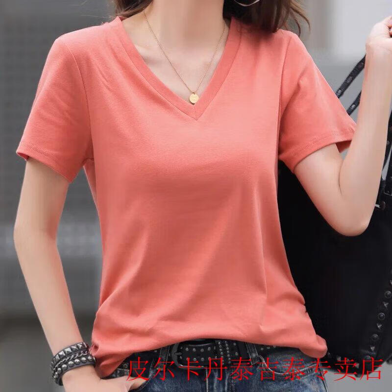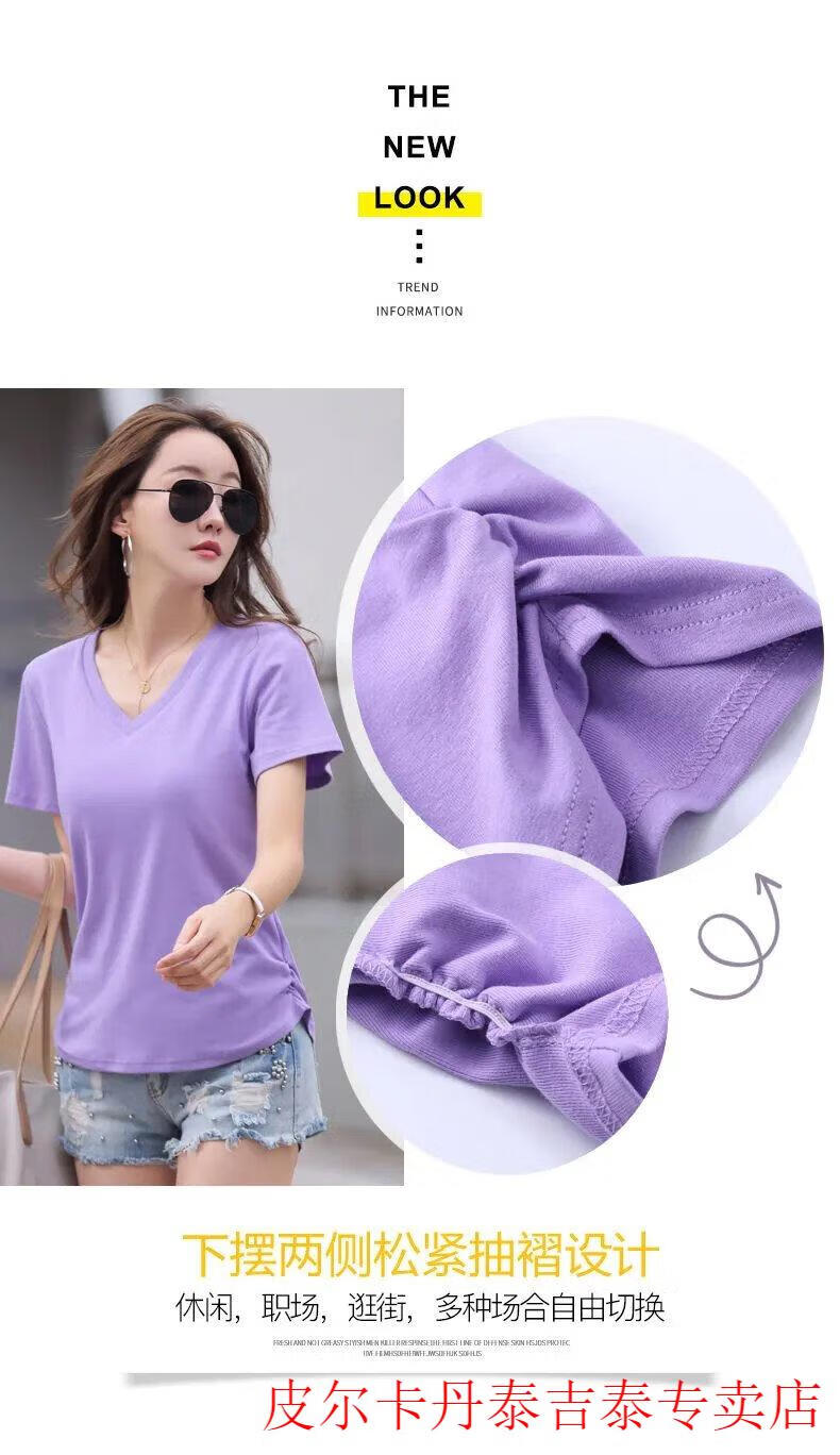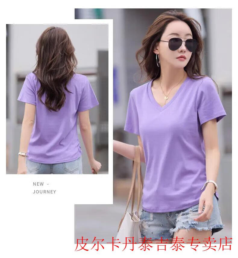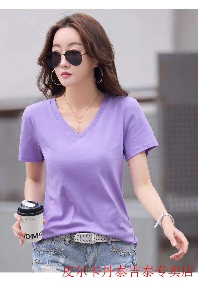 皮尔卡丹(pierre cardin)薄款休闲纯棉v领正肩短袖T恤女夏季韩版新款时尚运动气质T恤衫潮 气质紫(纯棉9854款) S 85-95斤