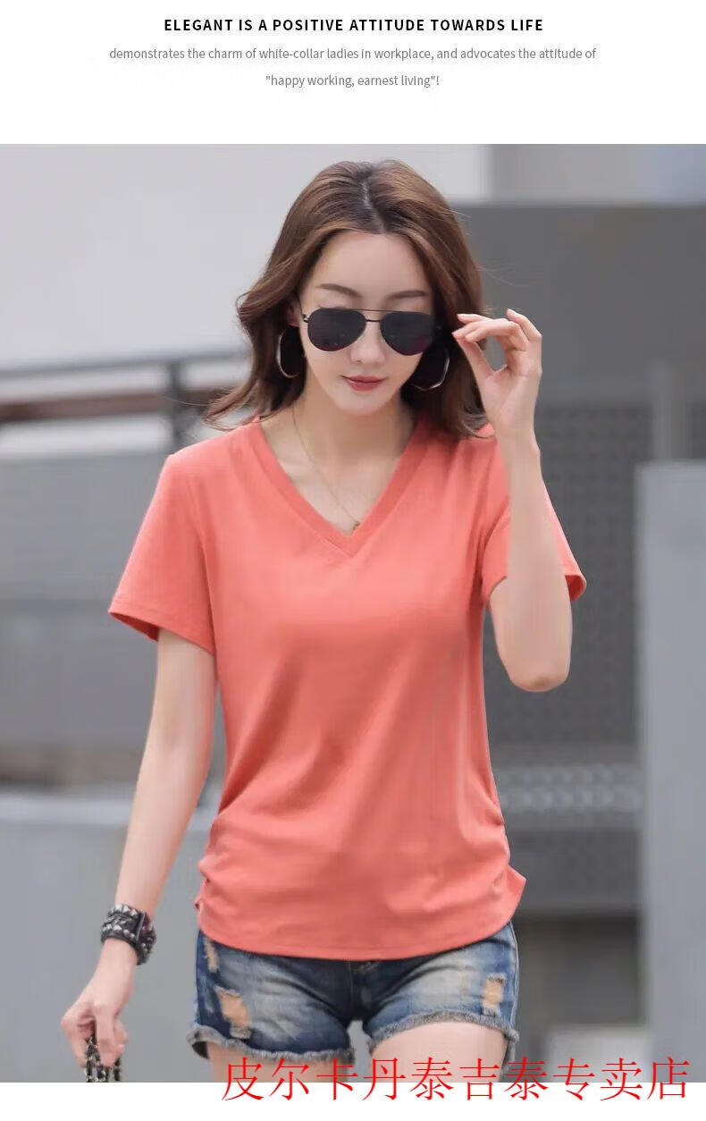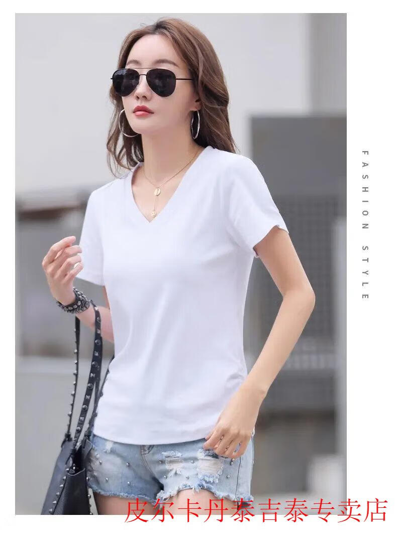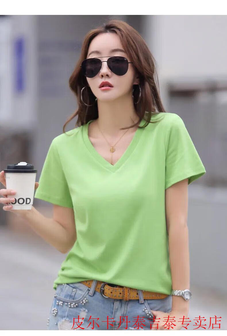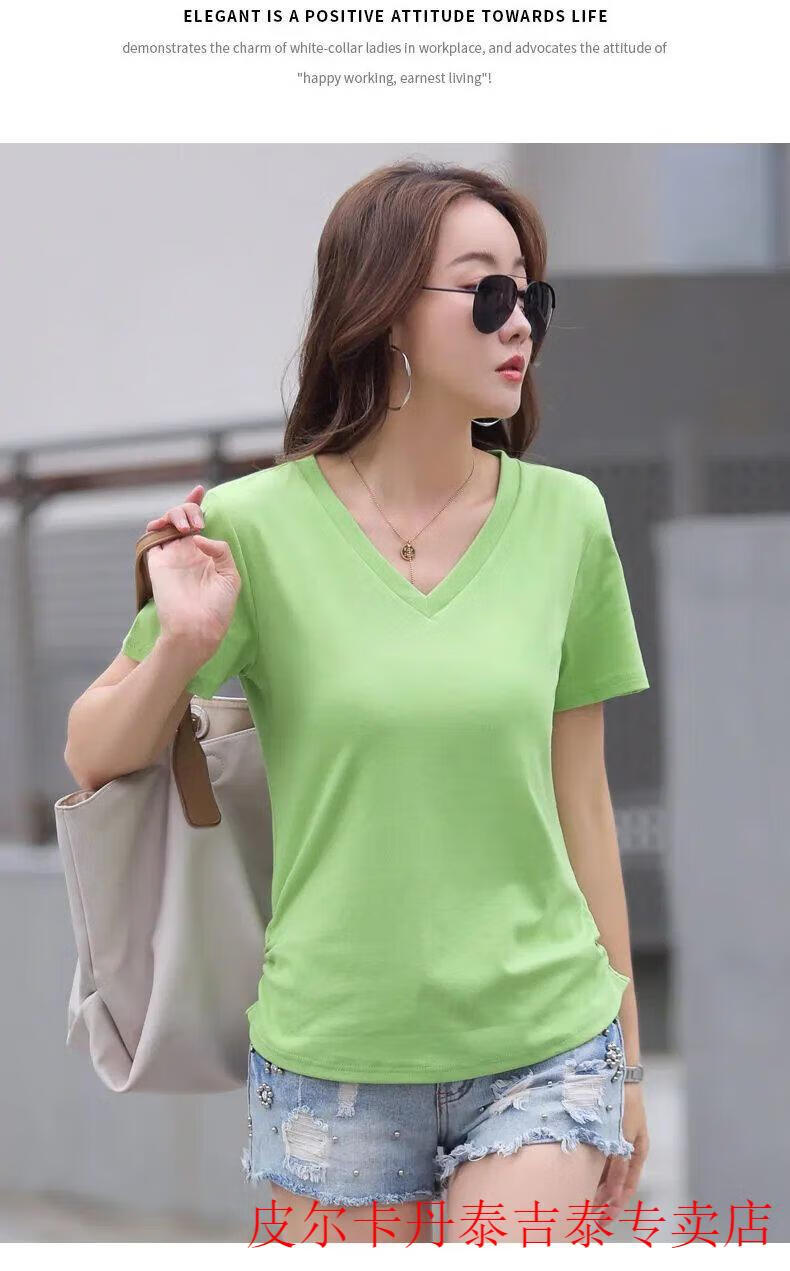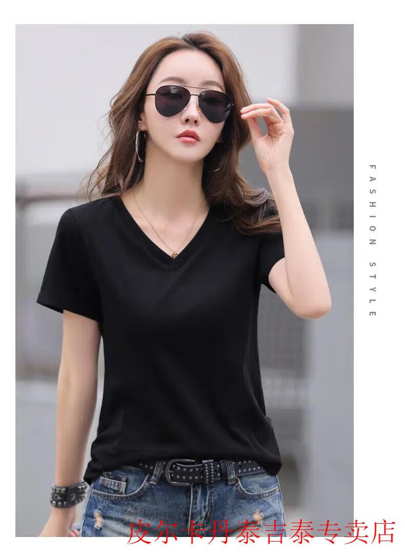 皮尔卡丹(pierre cardin)薄款休闲纯棉v领正肩短袖T恤女夏季韩版新款时尚运动气质T恤衫潮 气质紫(纯棉9854款) S 85-95斤