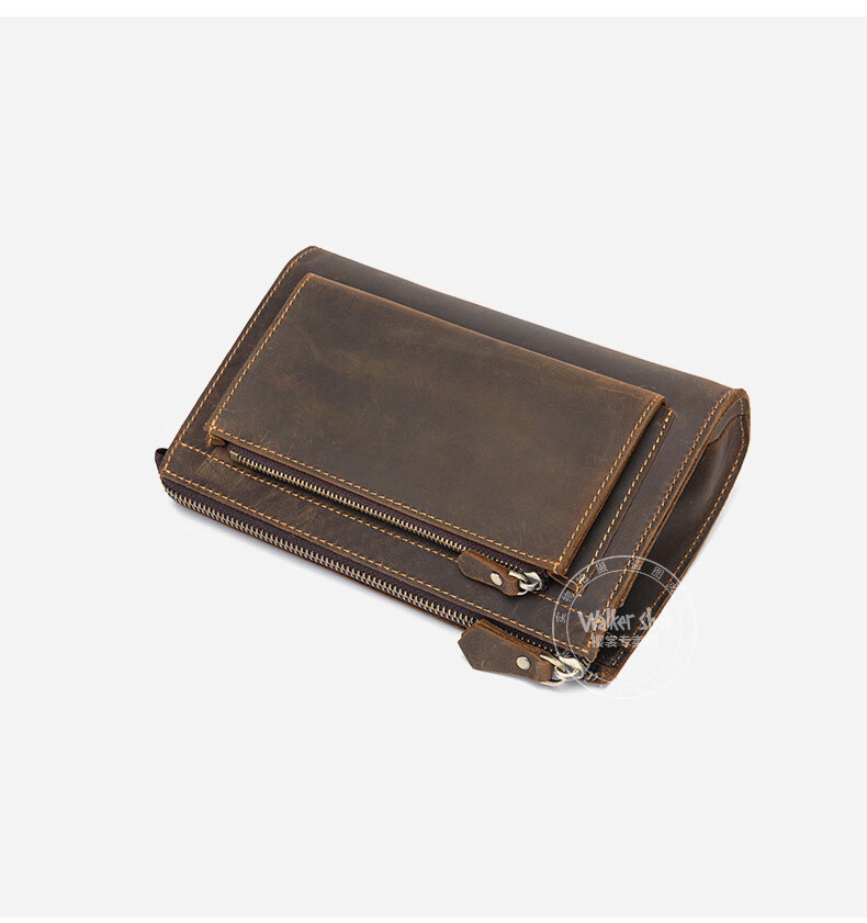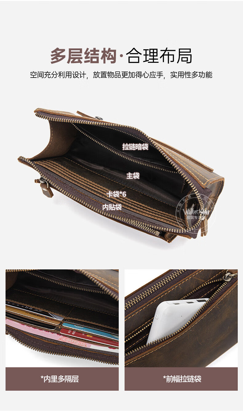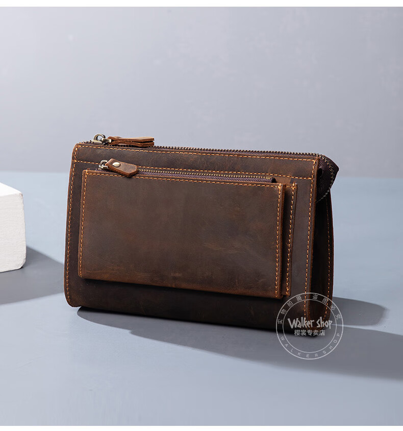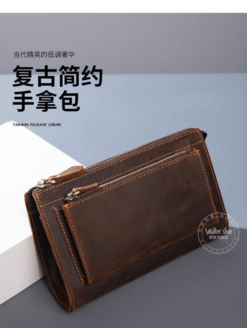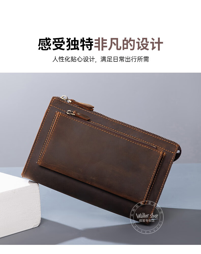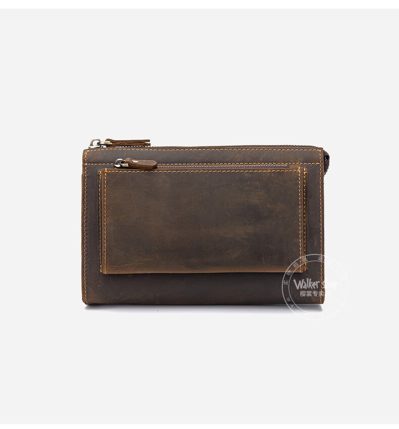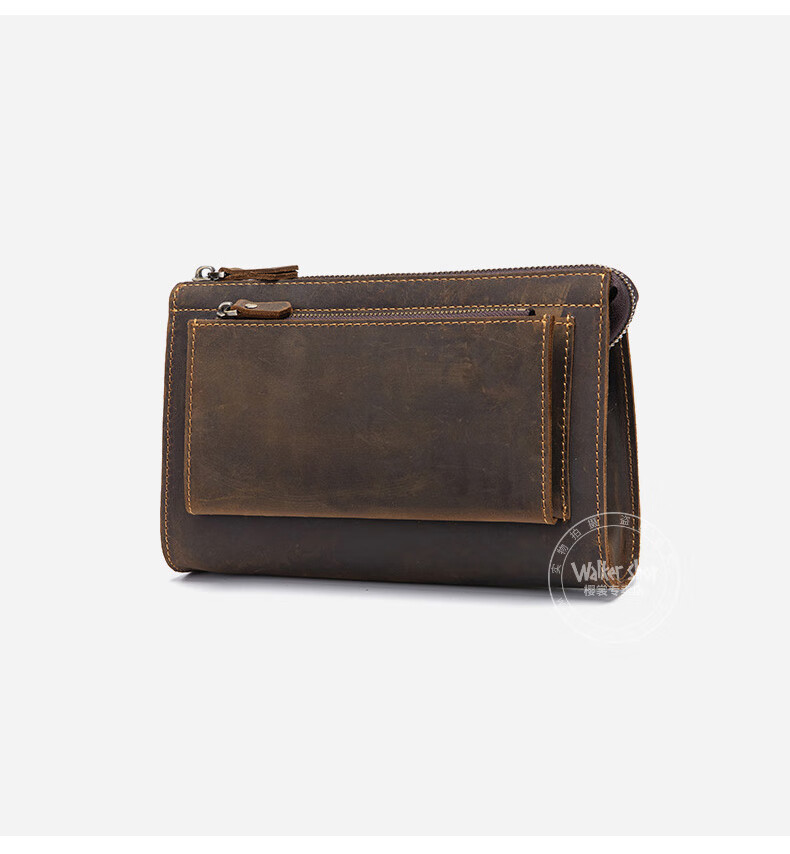 Walker Shop男包奢侈品新品【头层牛皮】男士长款拉链钱包休闲手工抓包手包潮 贵族棕