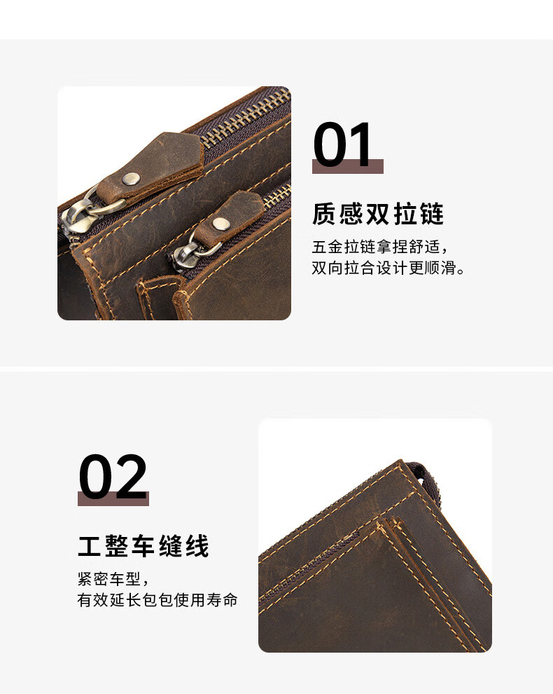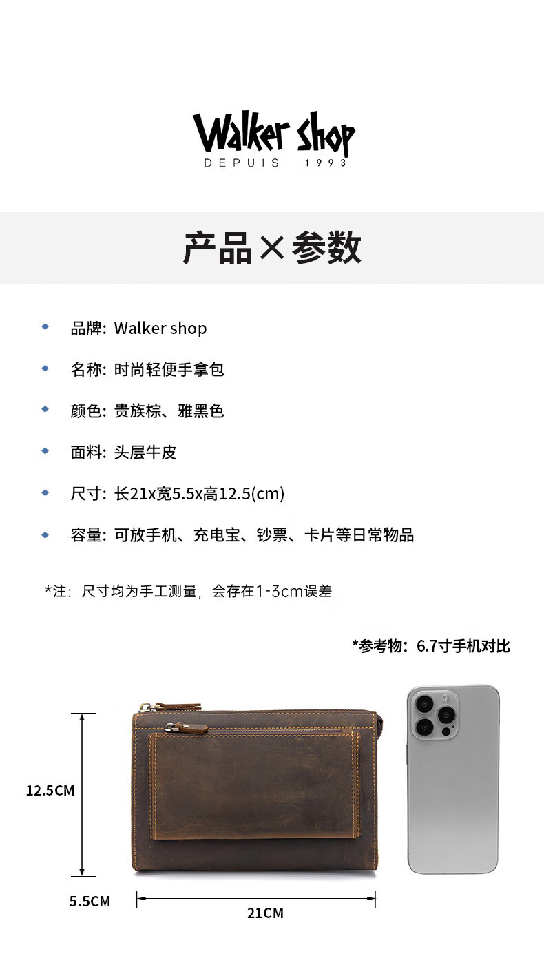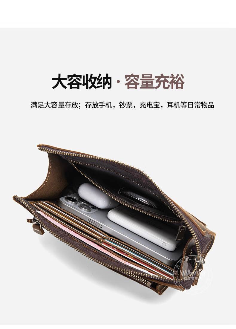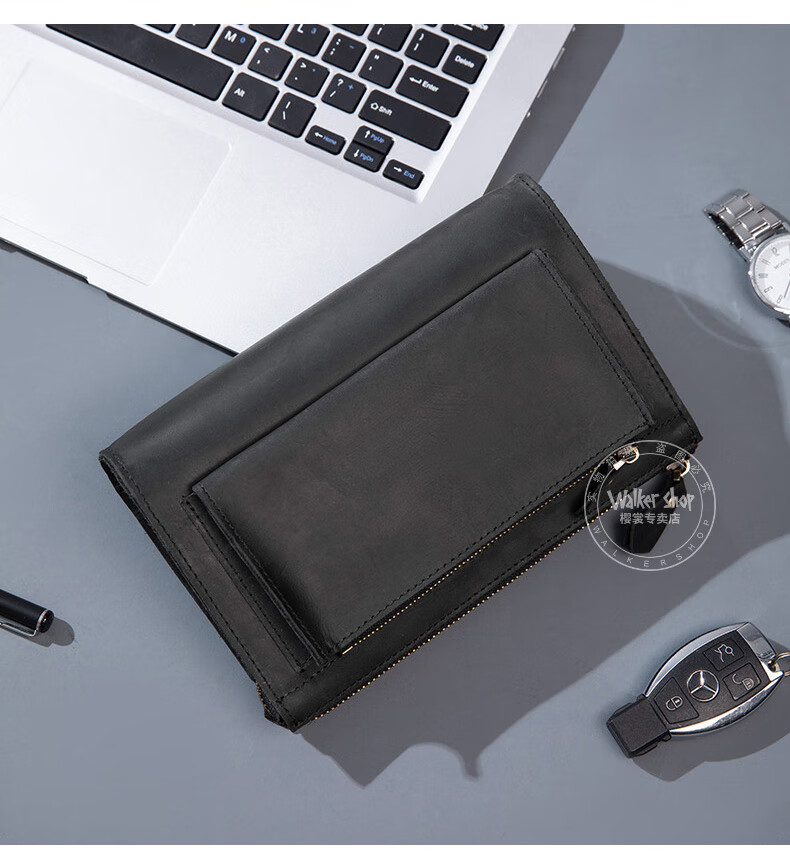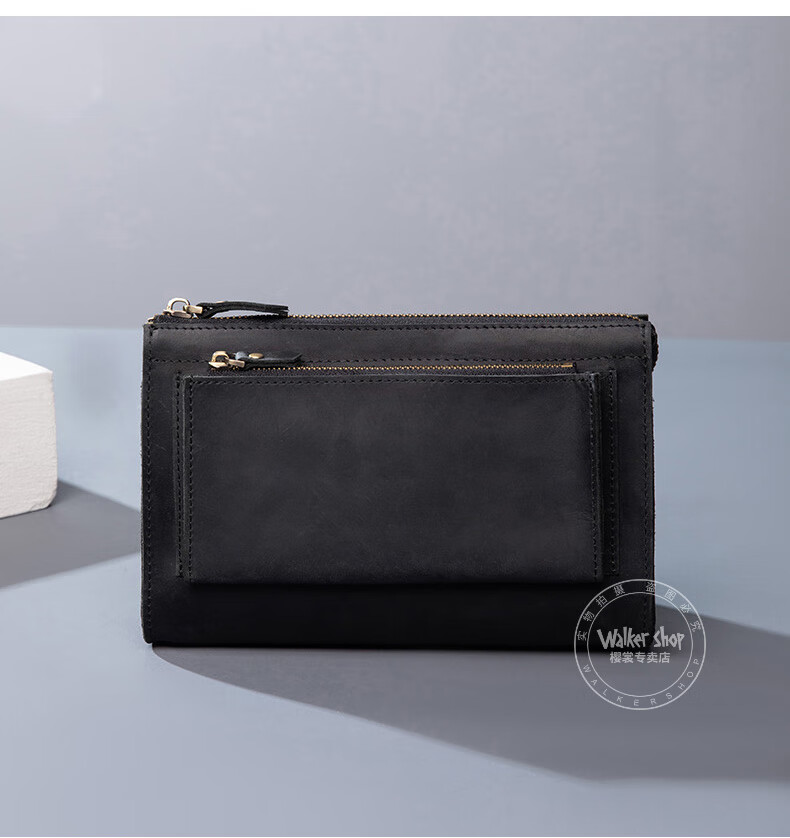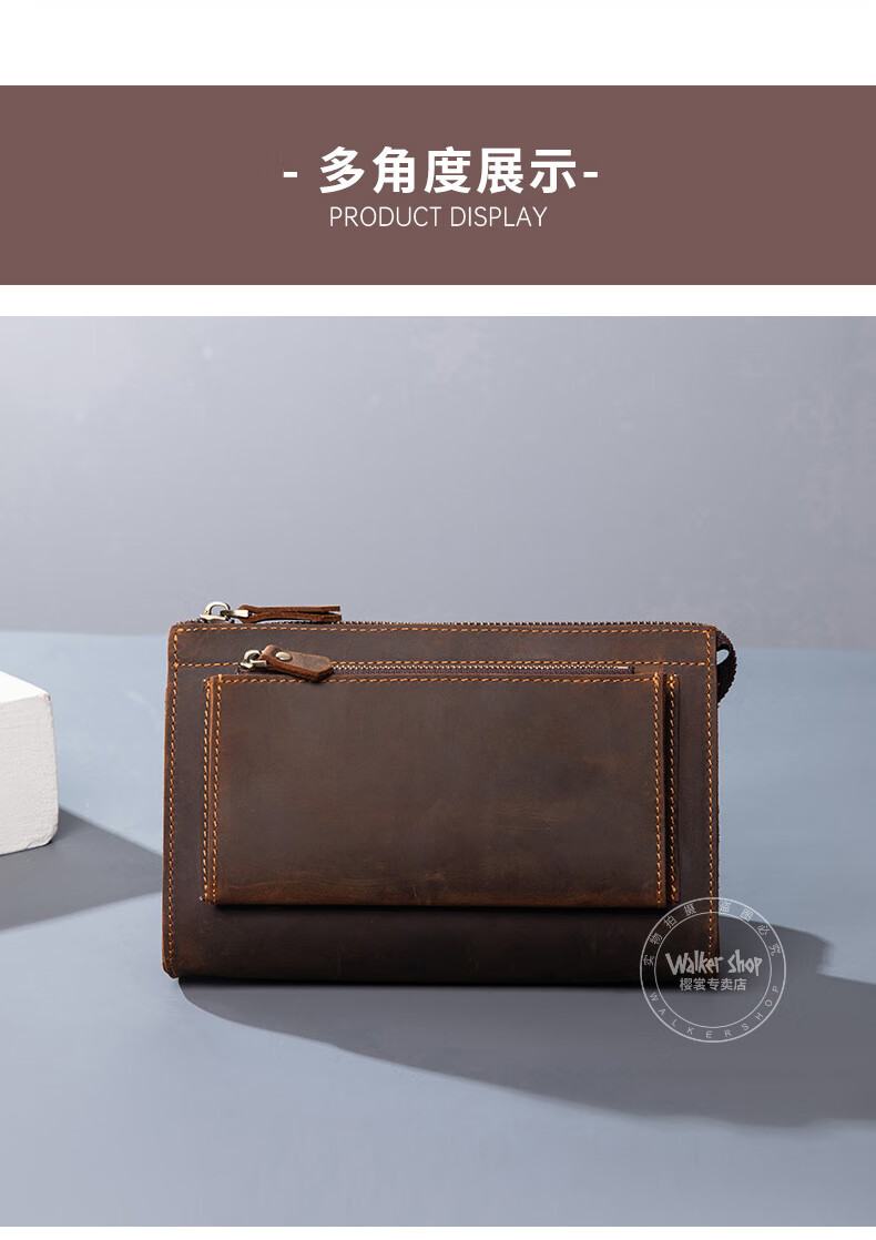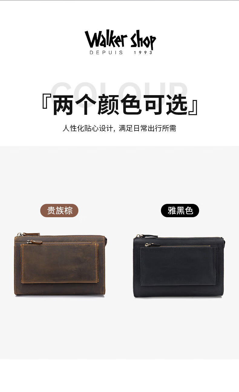 Walker Shop男包奢侈品新品【头层牛皮】男士长款拉链钱包休闲手工抓包手包潮 贵族棕