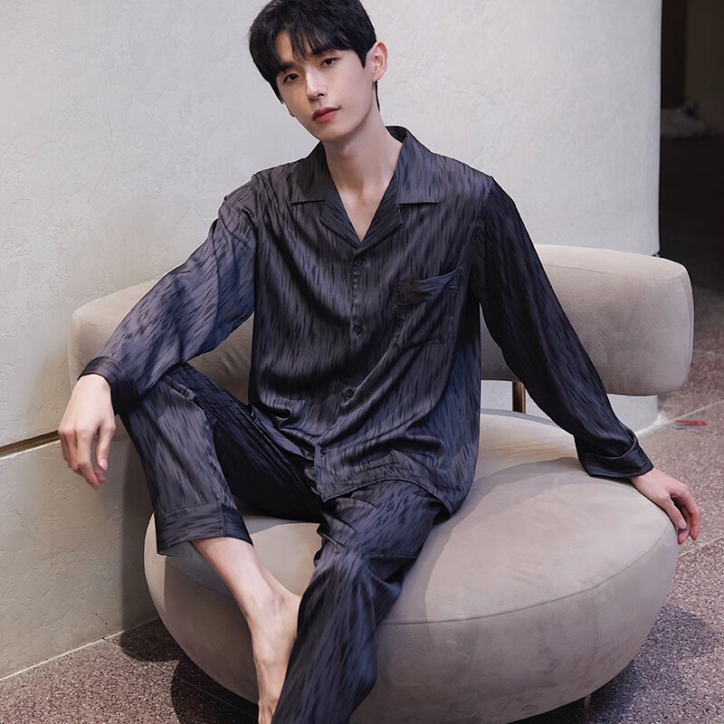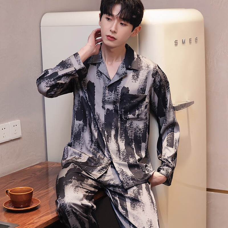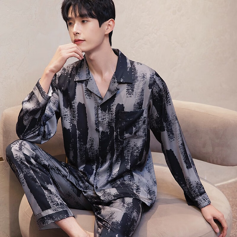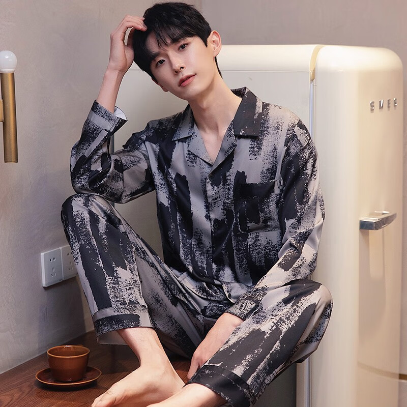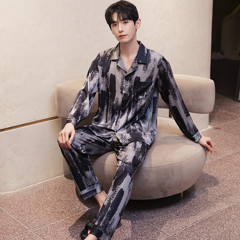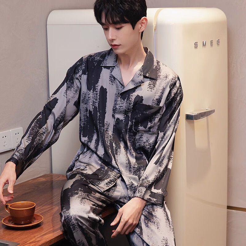 梦特娇(MONTAGUT)睡衣男士春秋款冰丝开衫长袖青少年薄款夏天印花可外穿家居服套装 xe双长6627#灰粽男 均码 l