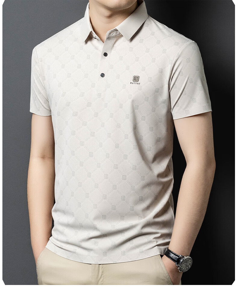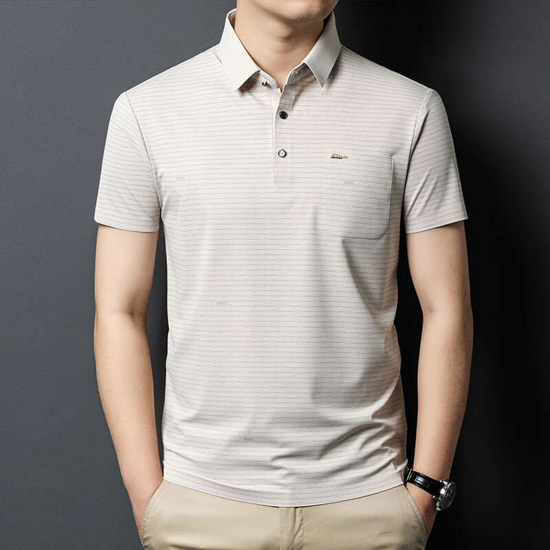 花花公子高档轻奢冰丝短袖t恤男士2025夏季薄款舒适时尚免烫透气POLO衫 杏色-15286 M 165