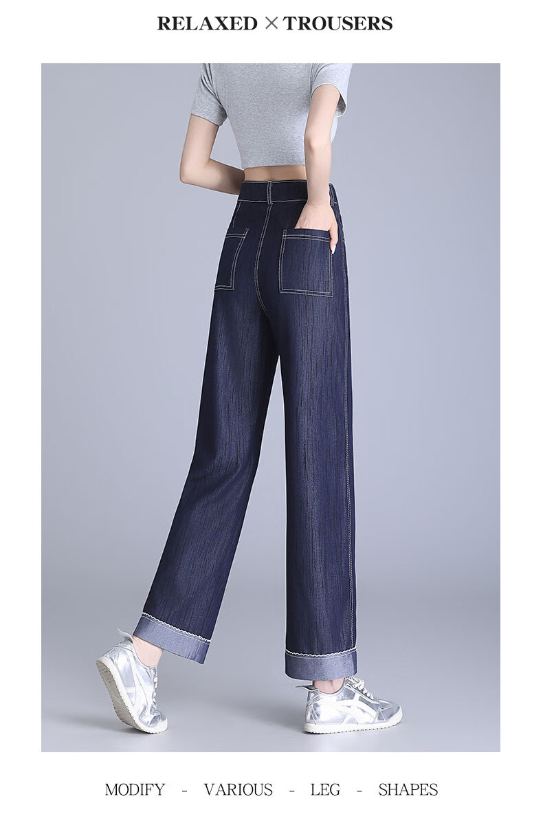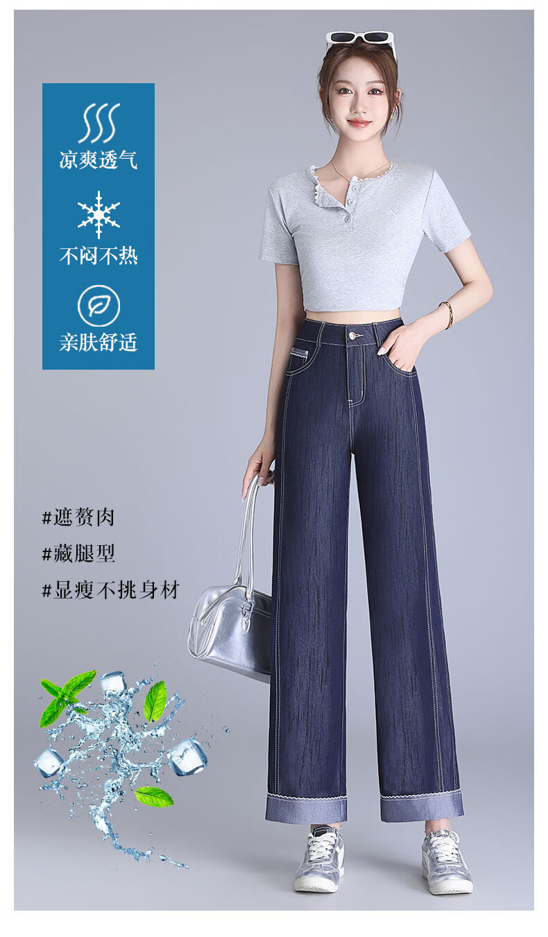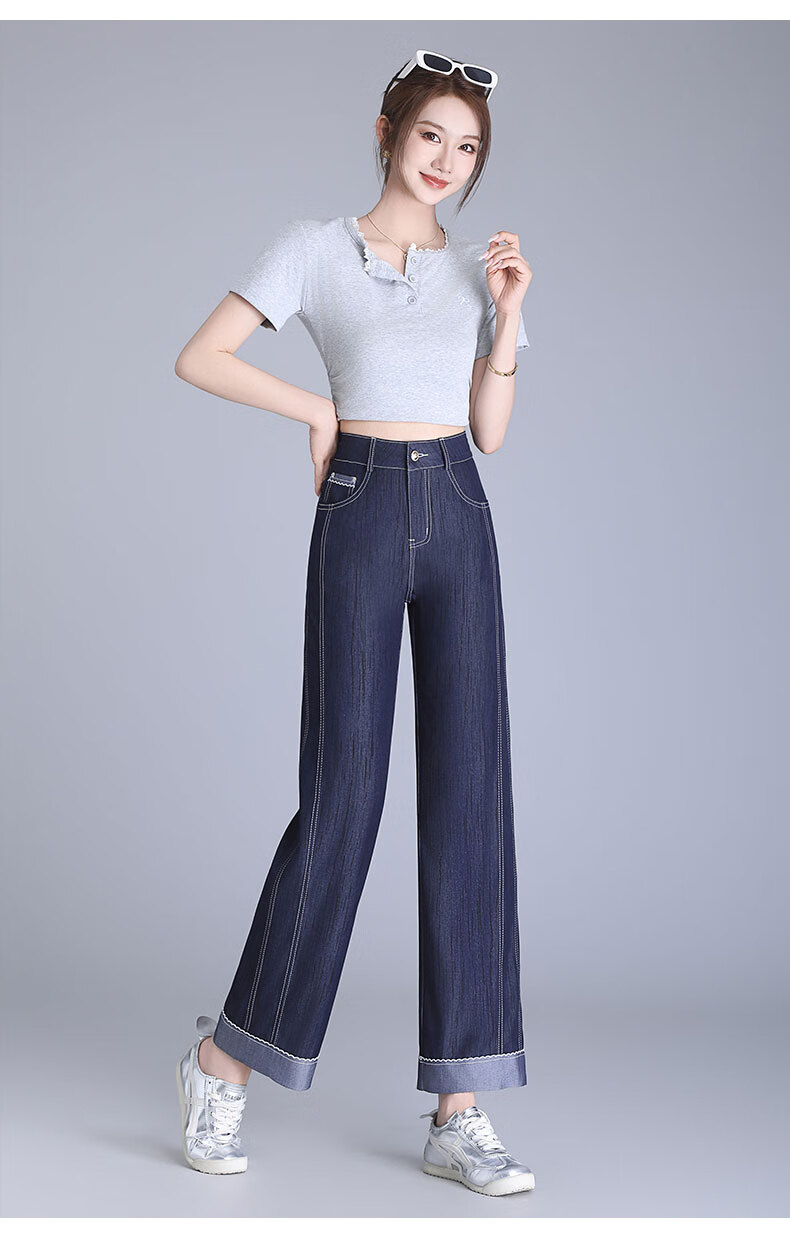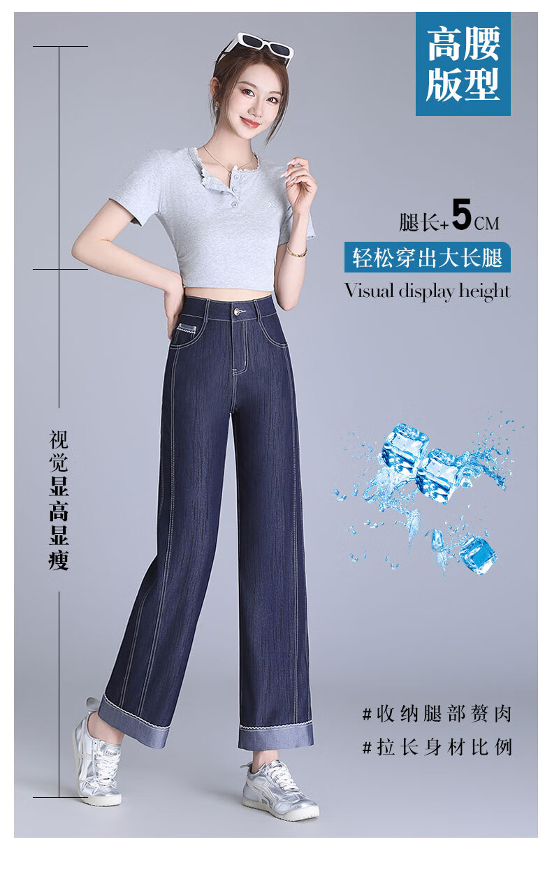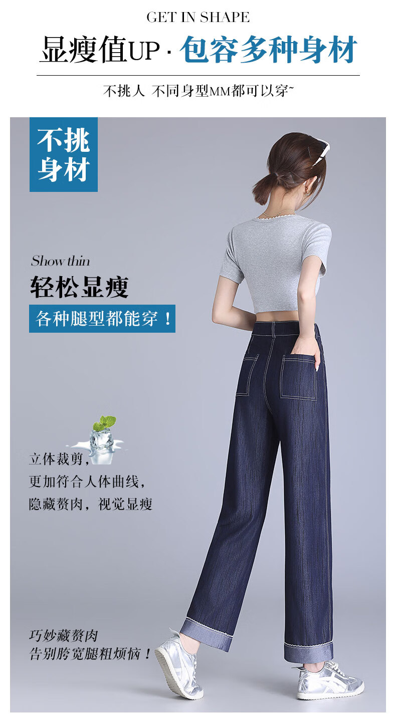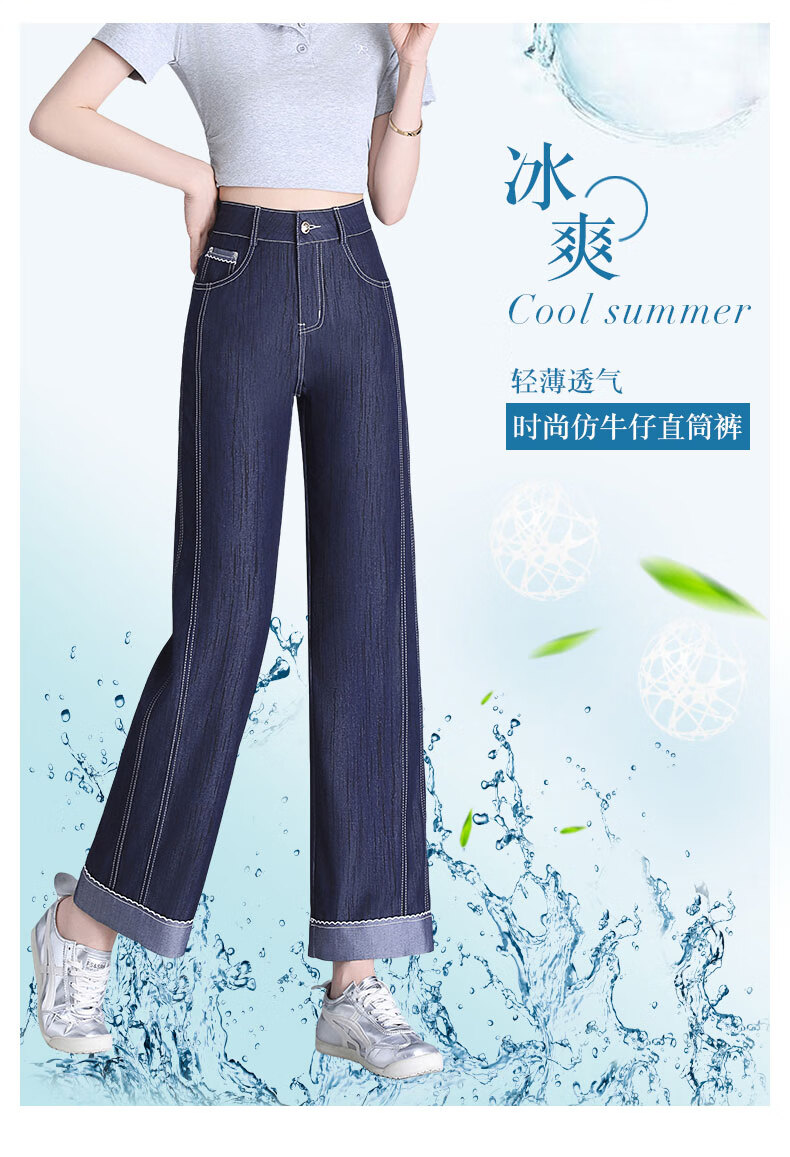 Dai Ziru wide-leg jeans women's nine-point pants 2025 summer thin loose high-waist slim small imitation denim straight pants nine-point pants blue M (27) Recommended 95-105Jin Jin equals 0.5 kg