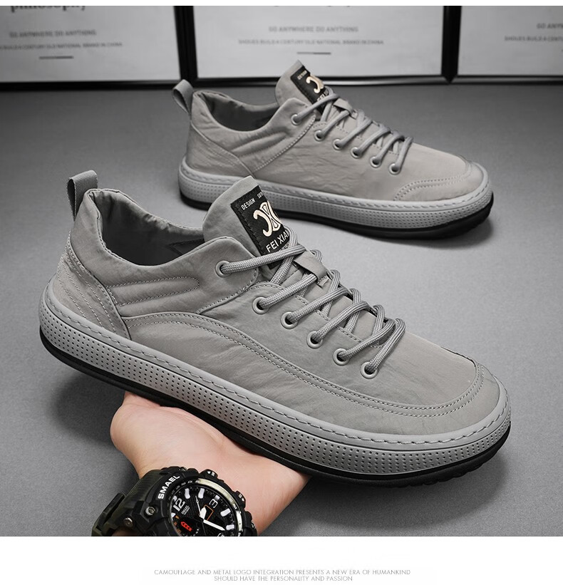 男士板鞋2025新款春秋一脚蹬透气小白鞋轻便防滑冰丝男士休闲潮鞋 W867绿色 42