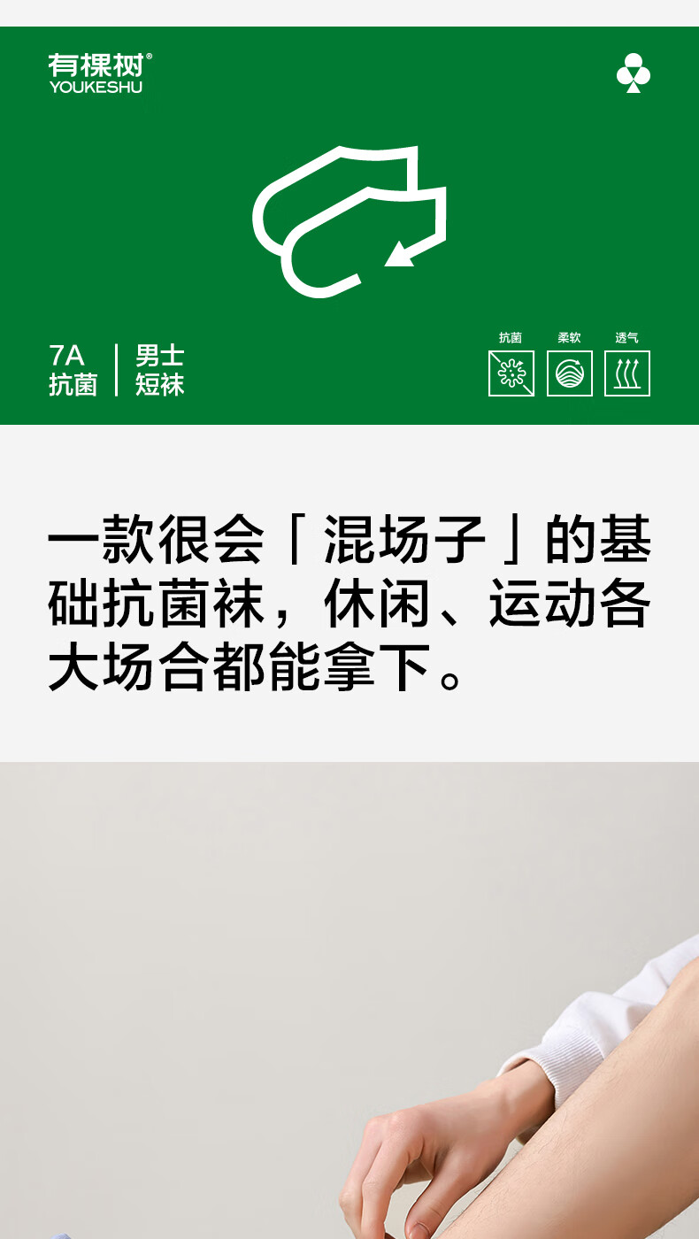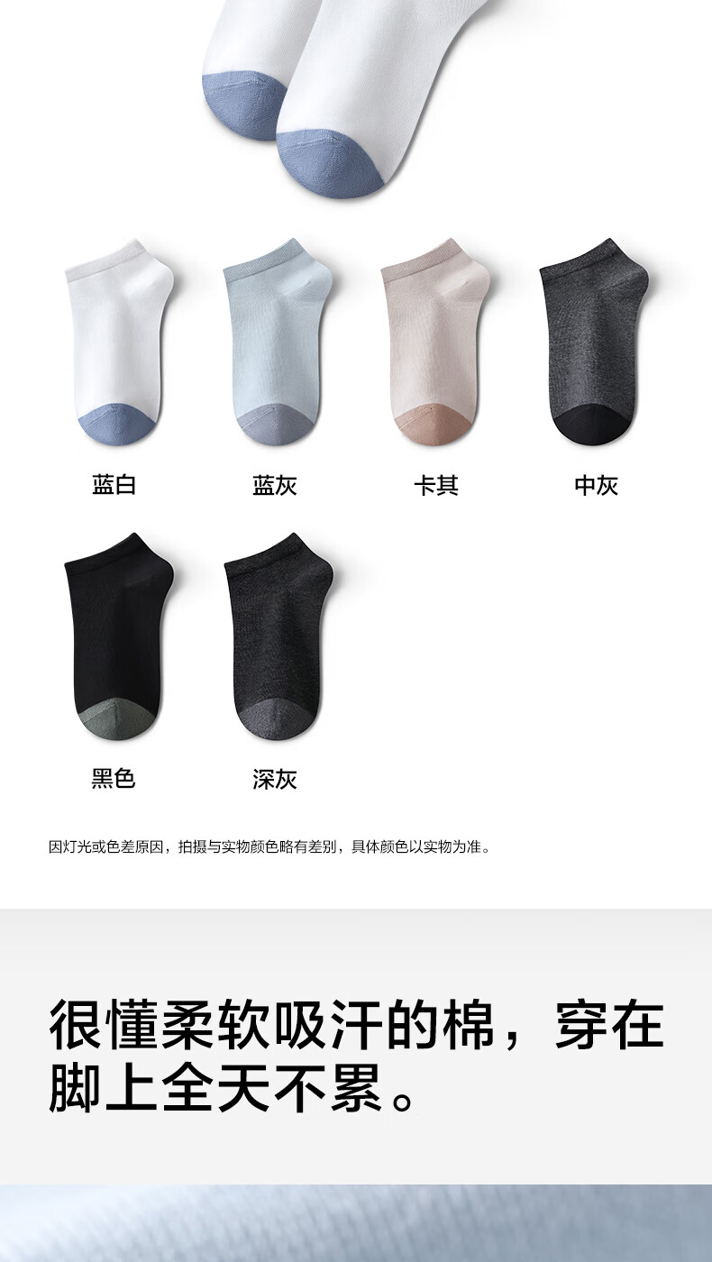 有棵树【5双】百搭棉袜运动夏季薄款透气耐磨抗菌防臭男士短袜子 2黑色+2深灰+中灰 均码