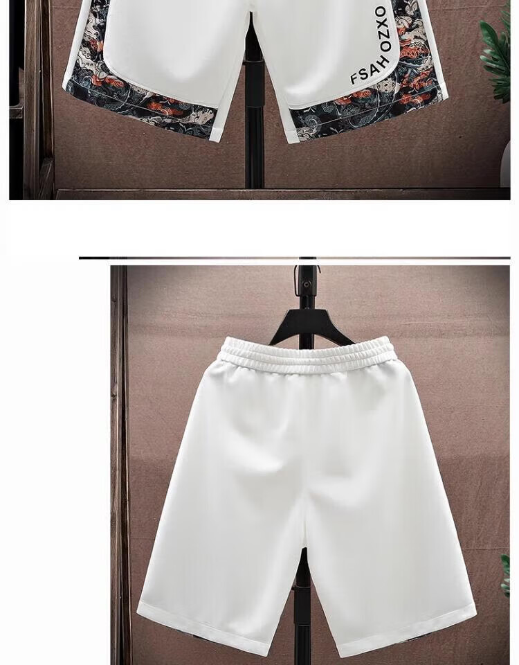 花花公子(PLAYBOY)新中式短裤男士夏季2025新款裤子休闲中裤宽松休闲潮牌复古五分裤 6625白色 4XL