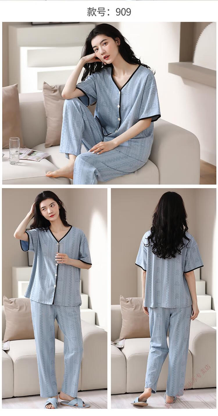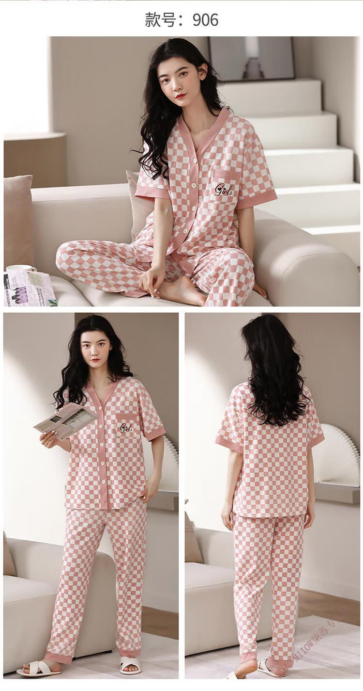 猫人(MiiOW)睡衣女春夏短袖长裤开衫韩版可爱V领夏天家居服全纯棉套装 YSH-9737#开衫 M 码80-100斤