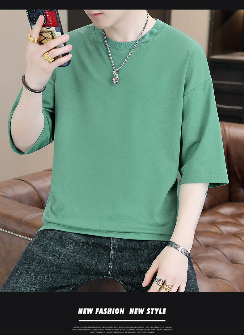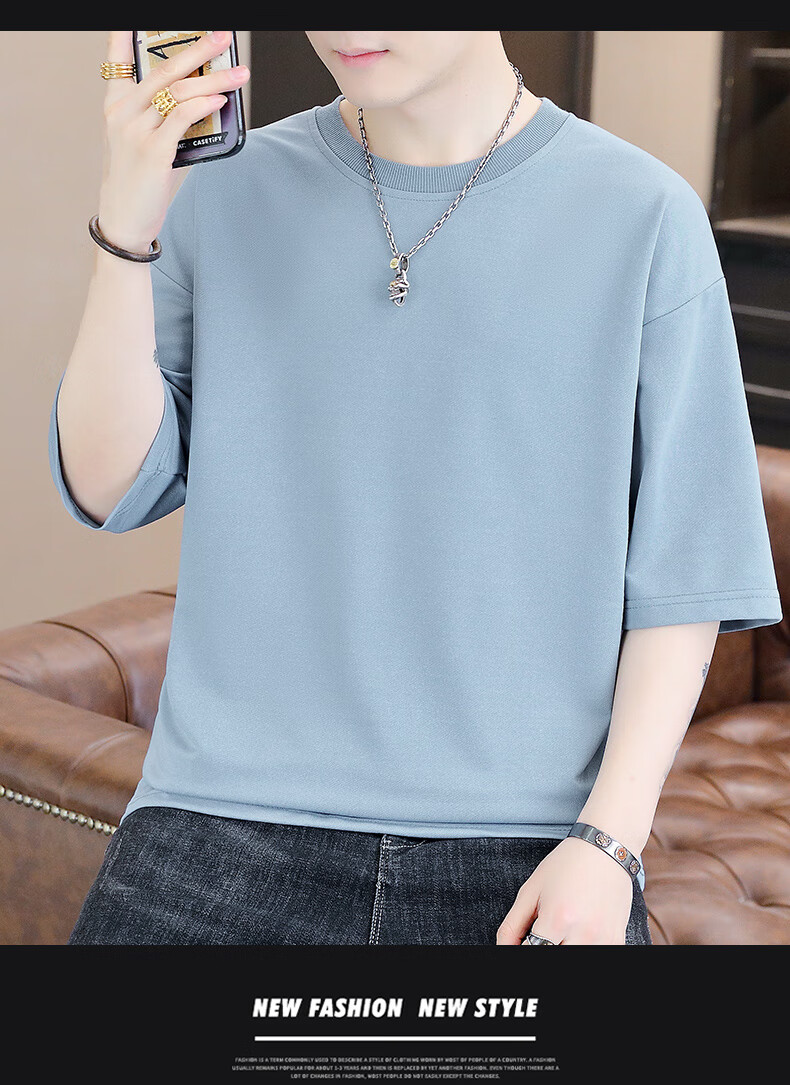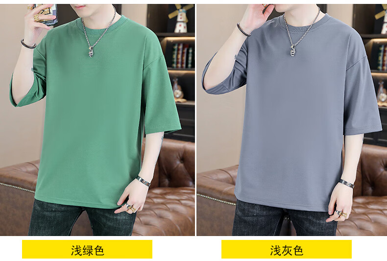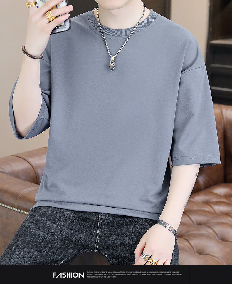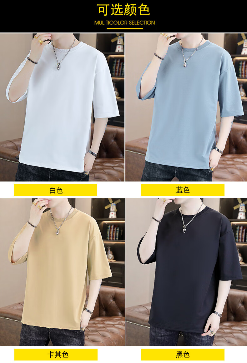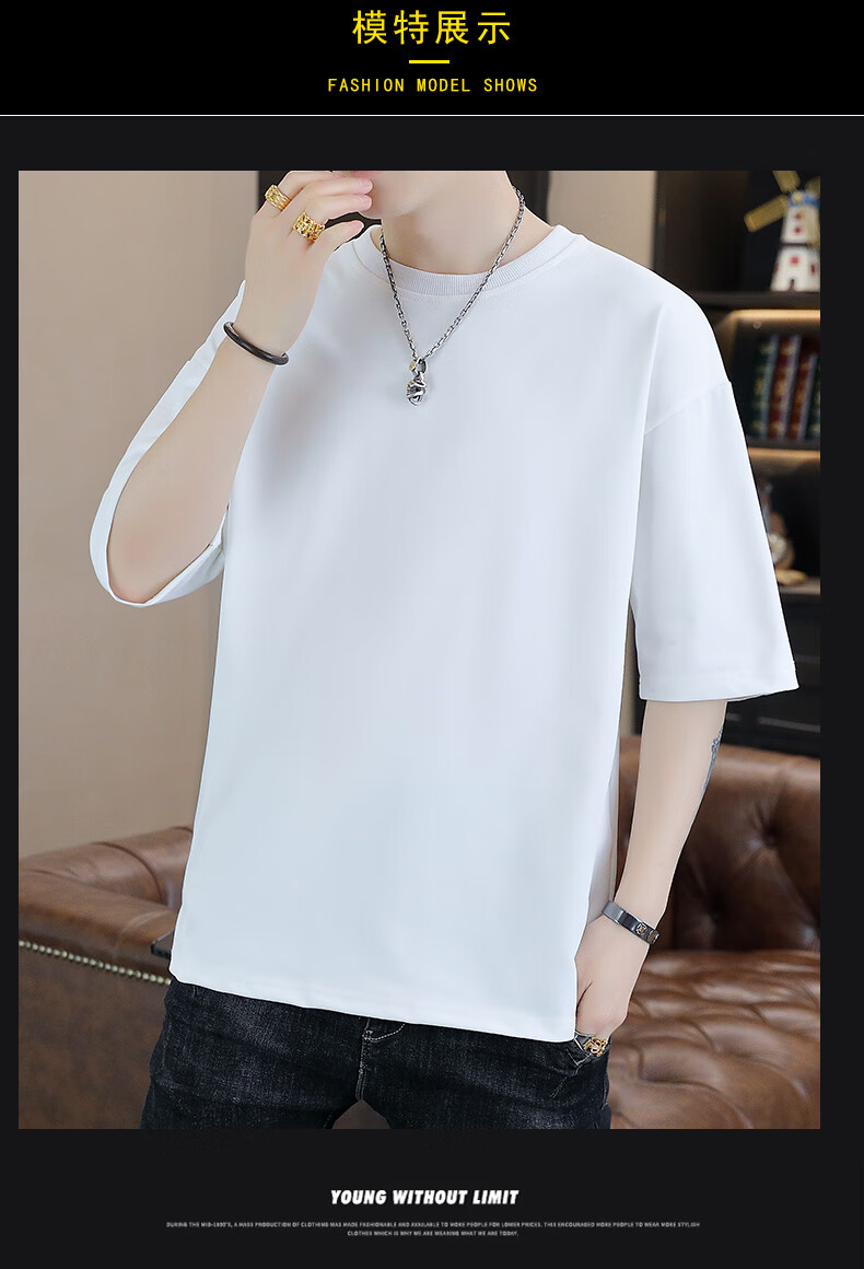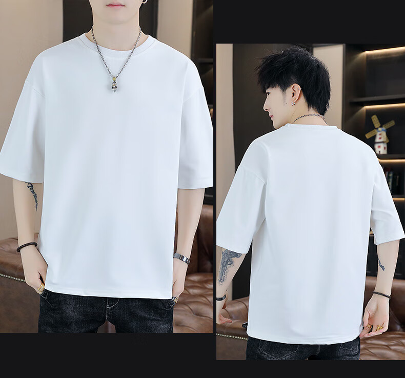 Playboy (PLAYBOY) camiseta holgada con cuello redondo para hombre de color sólido de moda 2025 verano nuevo estilo camiseta de manga de cinco cuartos para jóvenes guapos de moda T9902 blanco M