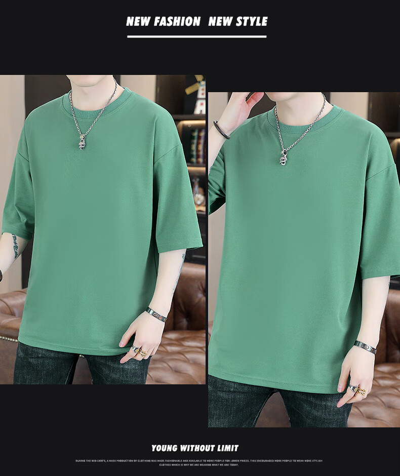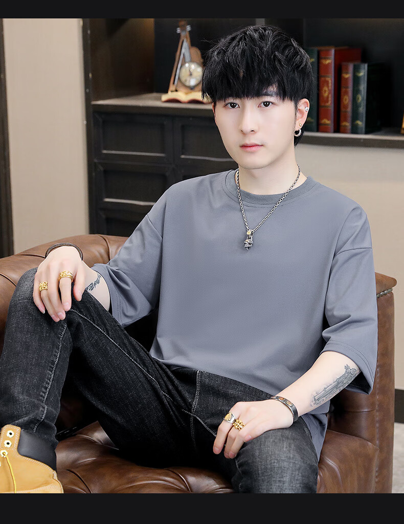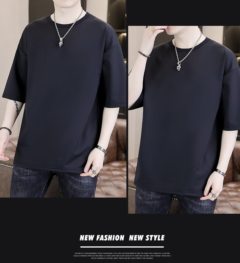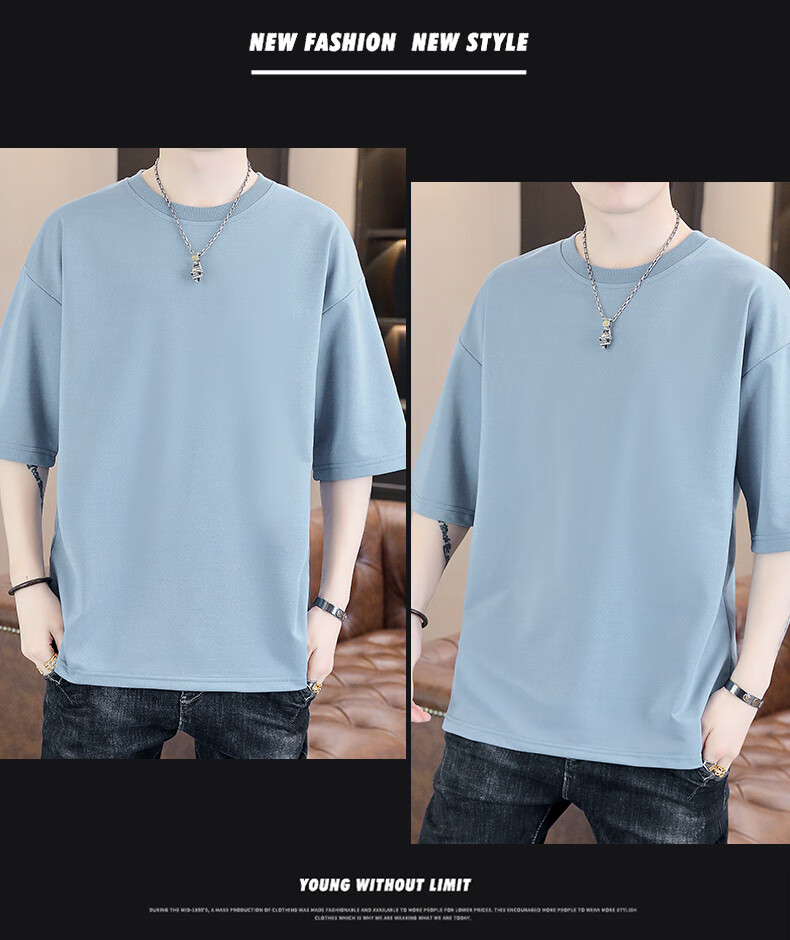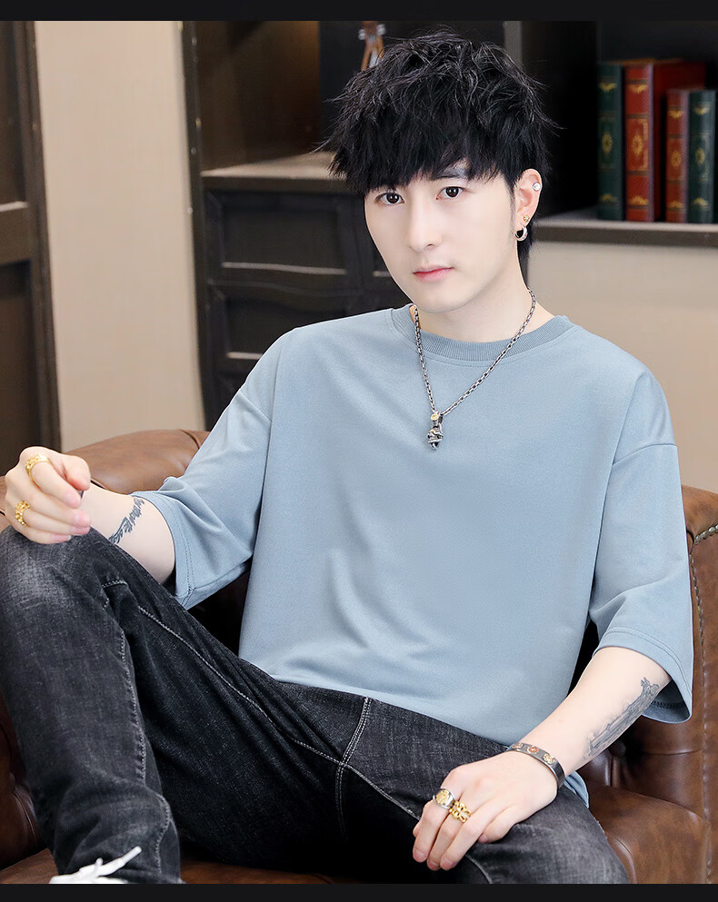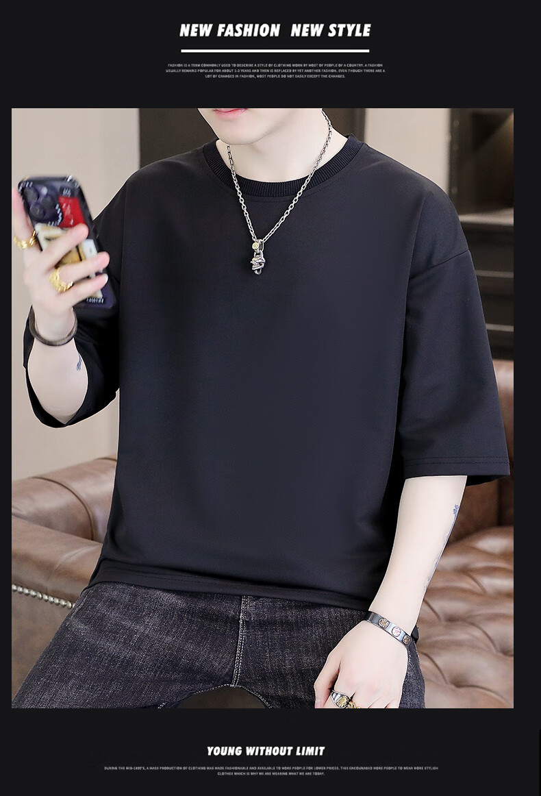 Playboy (PLAYBOY) camiseta holgada con cuello redondo para hombre de color sólido de moda 2025 verano nuevo estilo camiseta de manga de cinco cuartos para jóvenes guapos de moda T9902 blanco M