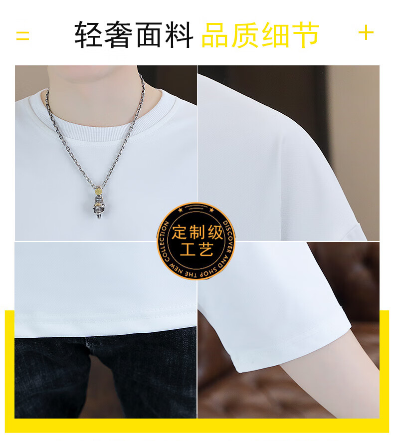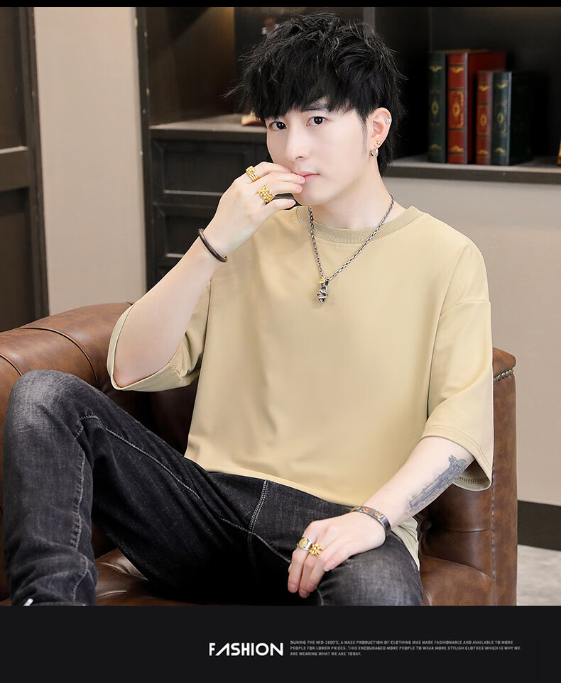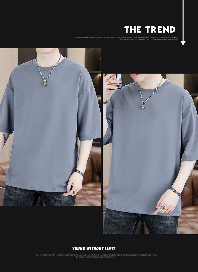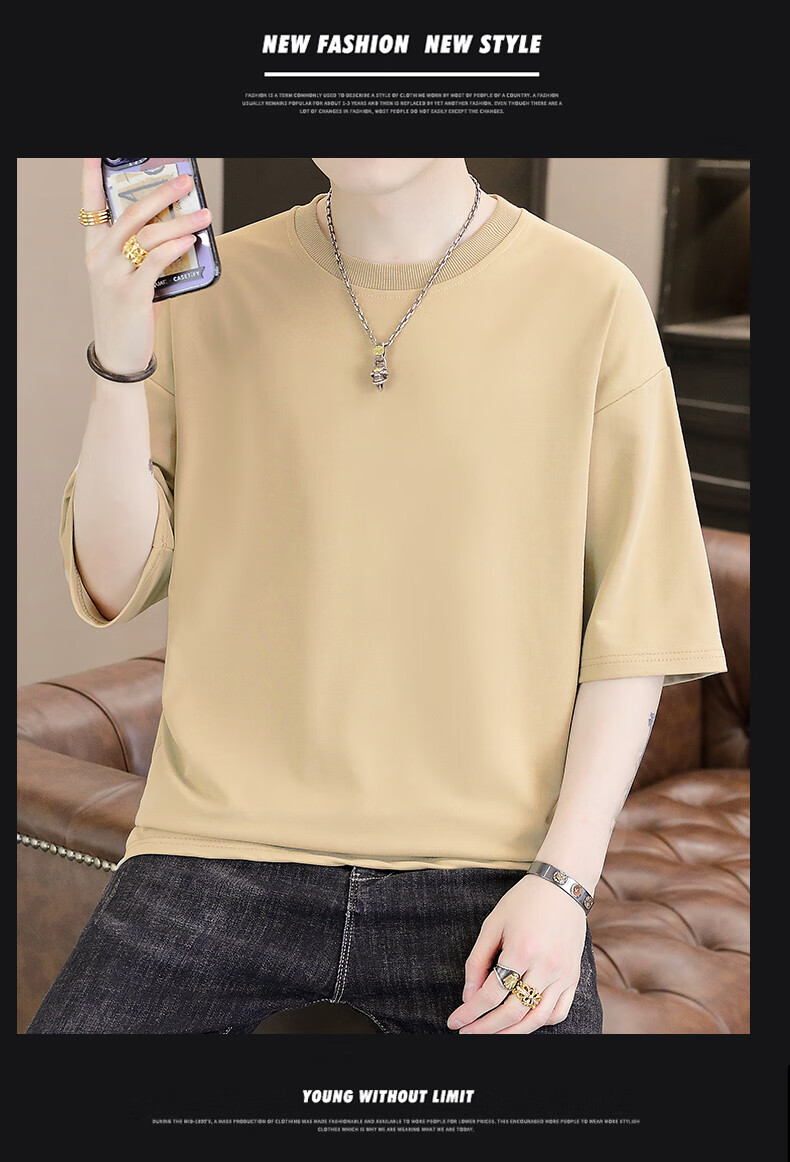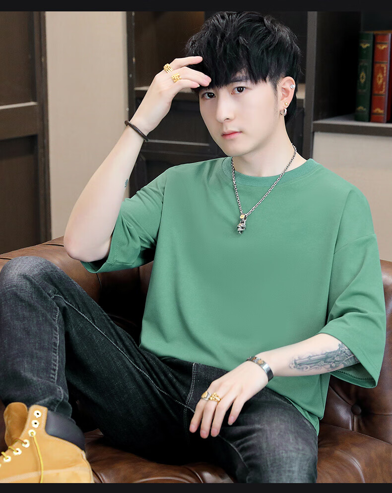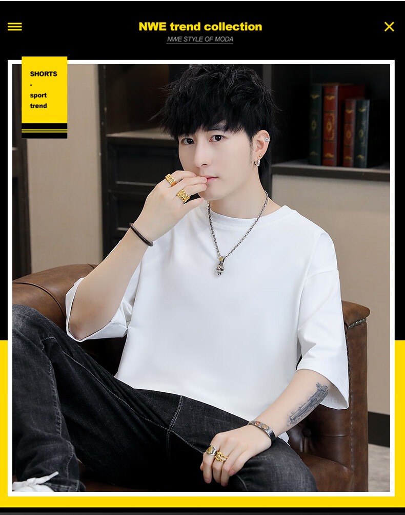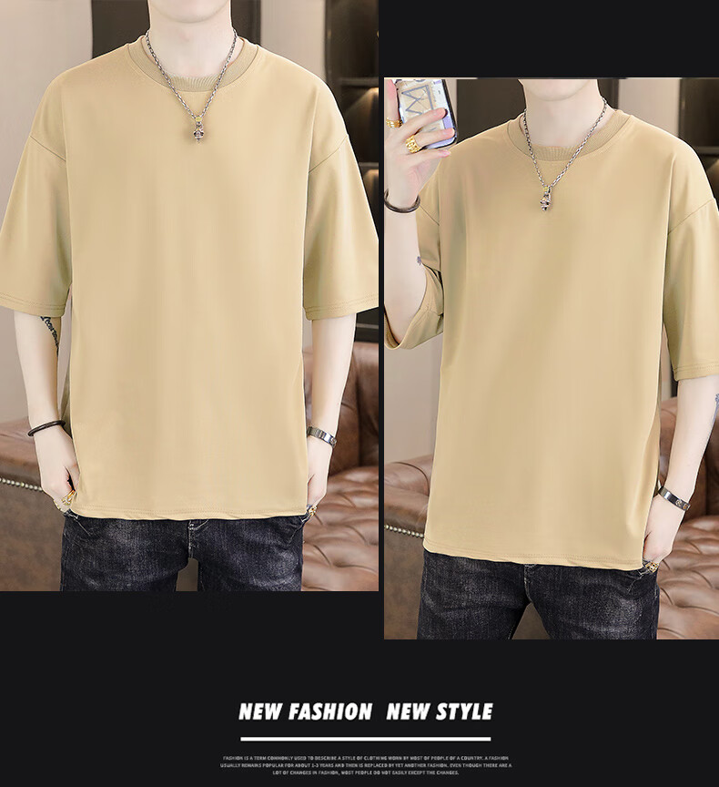 Playboy (PLAYBOY) camiseta holgada con cuello redondo para hombre de color sólido de moda 2025 verano nuevo estilo camiseta de manga de cinco cuartos para jóvenes guapos de moda T9902 blanco M