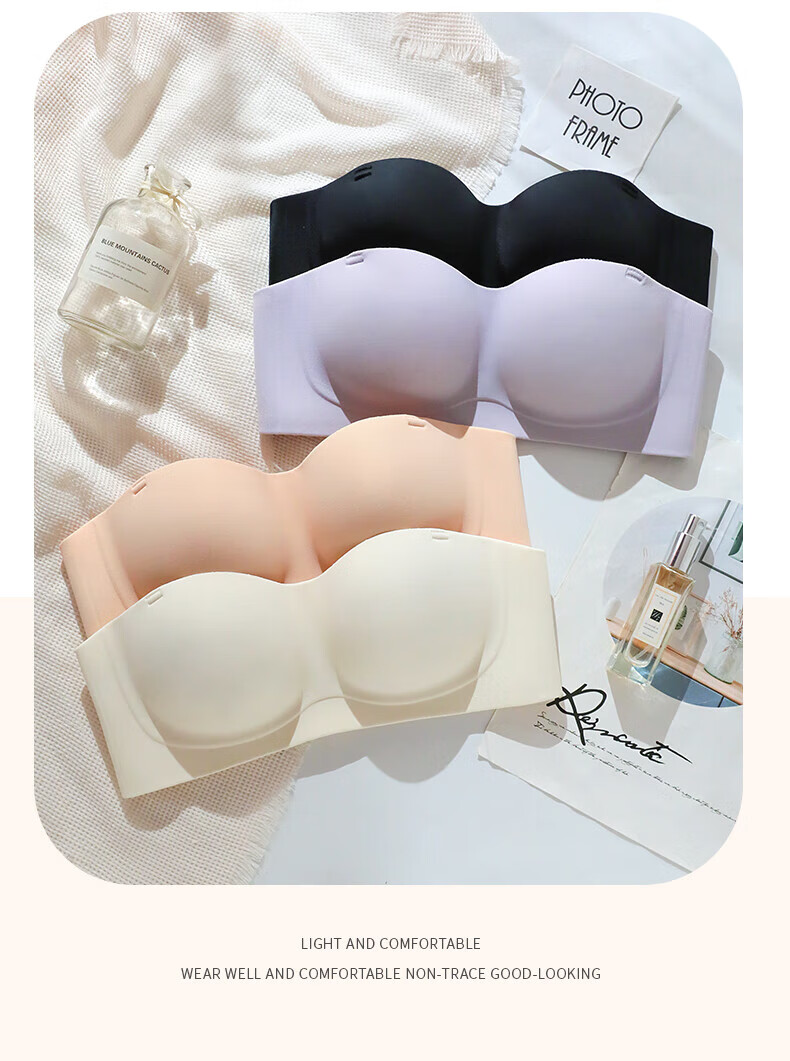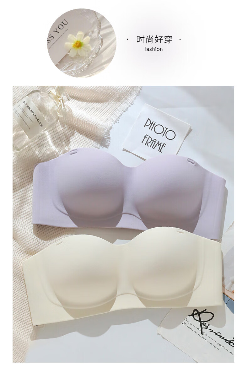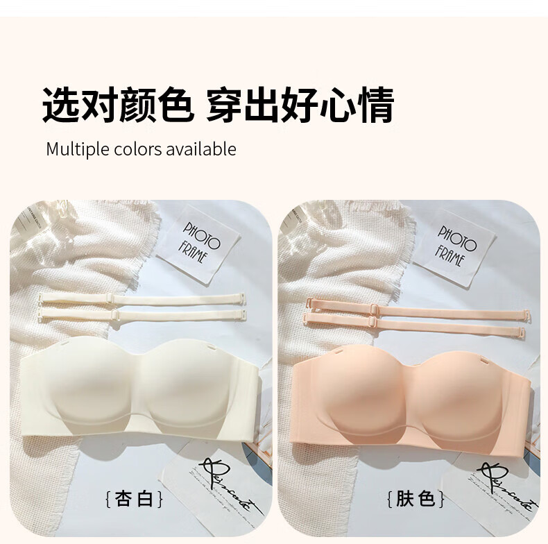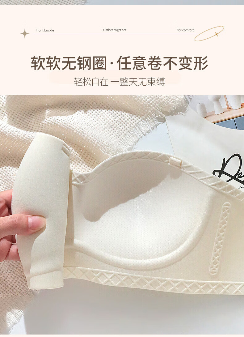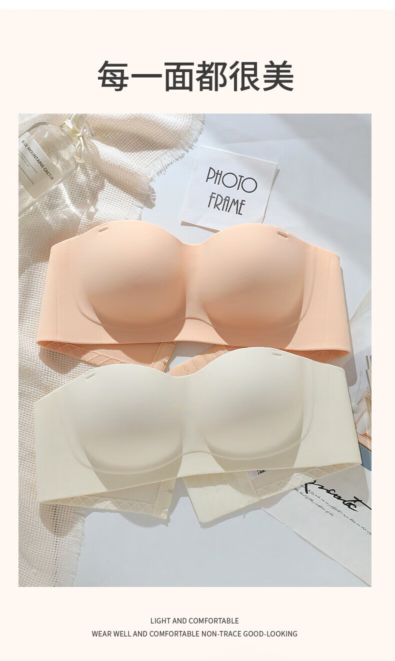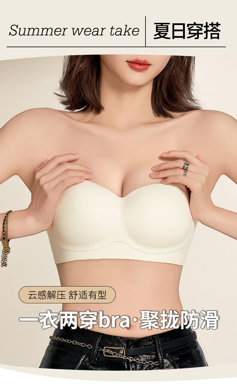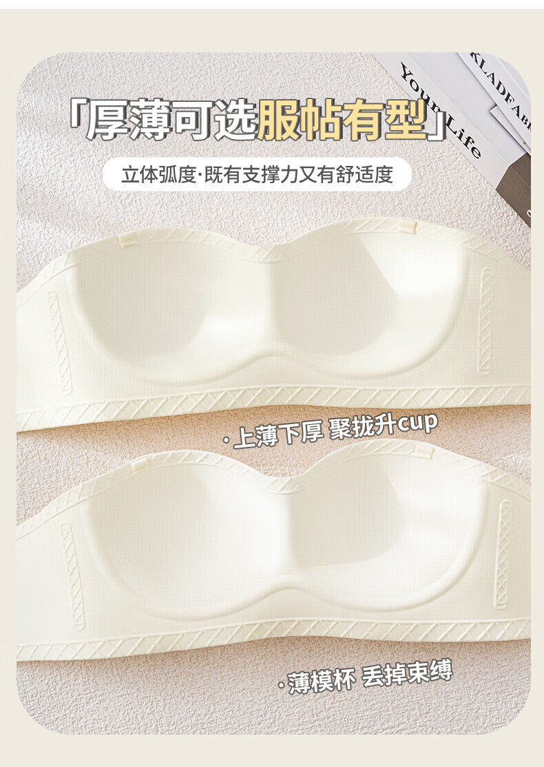 猫人无肩带内衣女士小胸聚拢防滑抹胸裹胸隐形文胸罩收副乳防下垂上托 杏白 70B (160) 通杯·厚