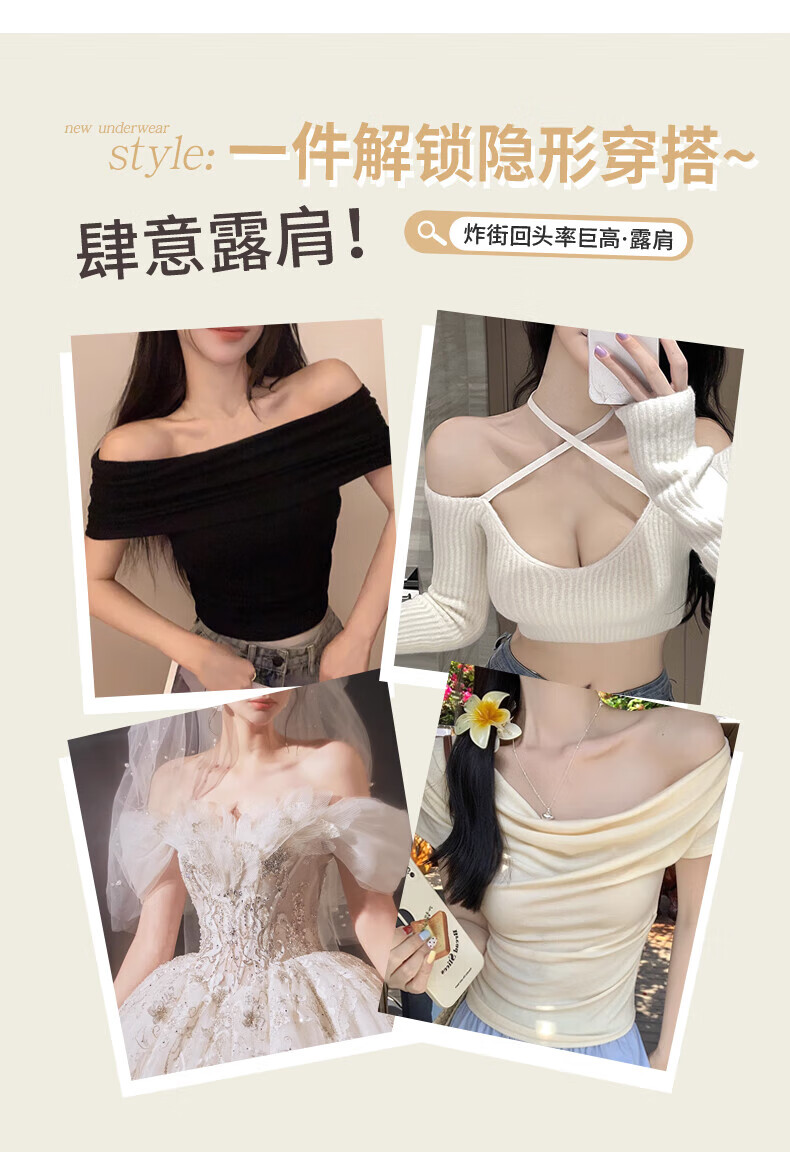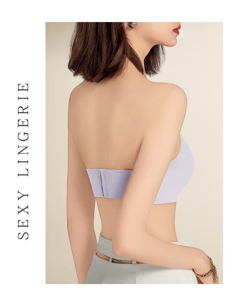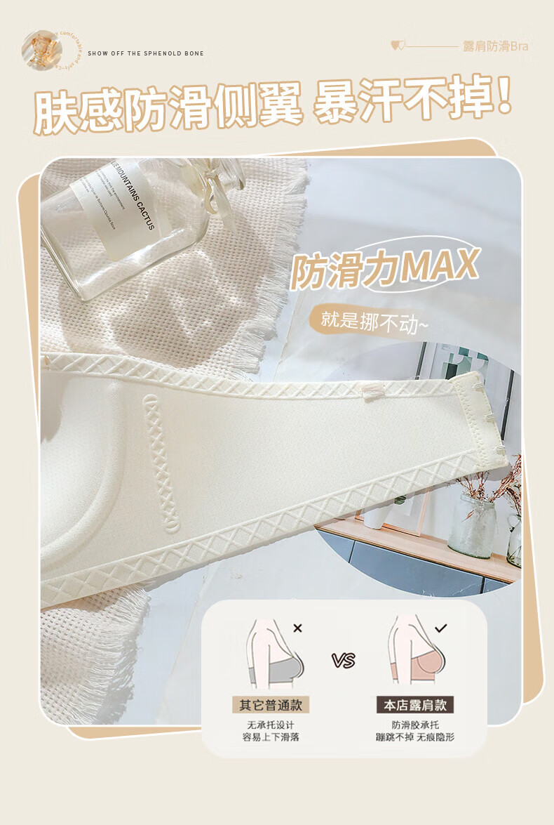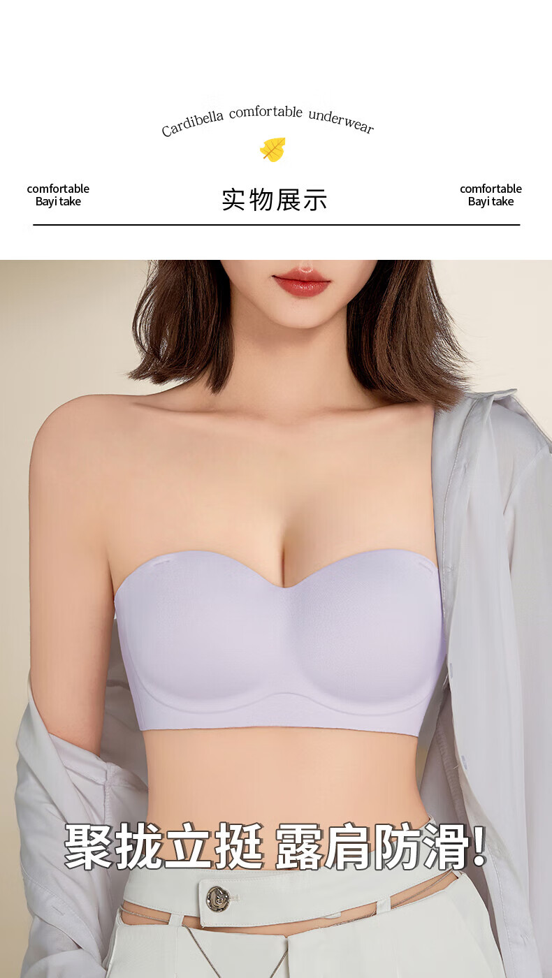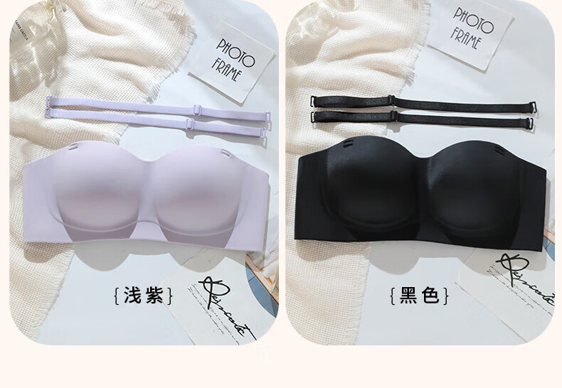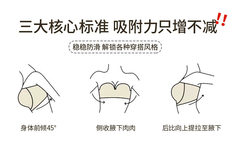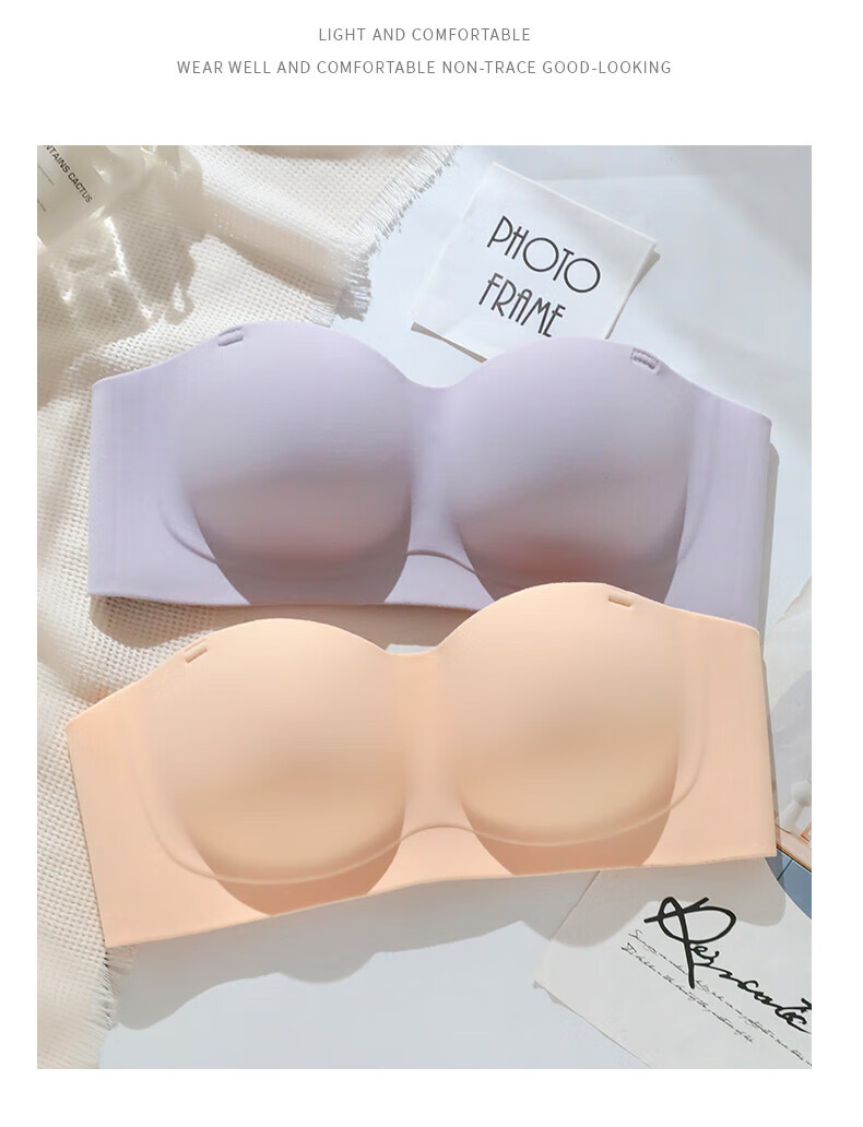 猫人无肩带内衣女士小胸聚拢防滑抹胸裹胸隐形文胸罩收副乳防下垂上托 杏白 70B (160) 通杯·厚