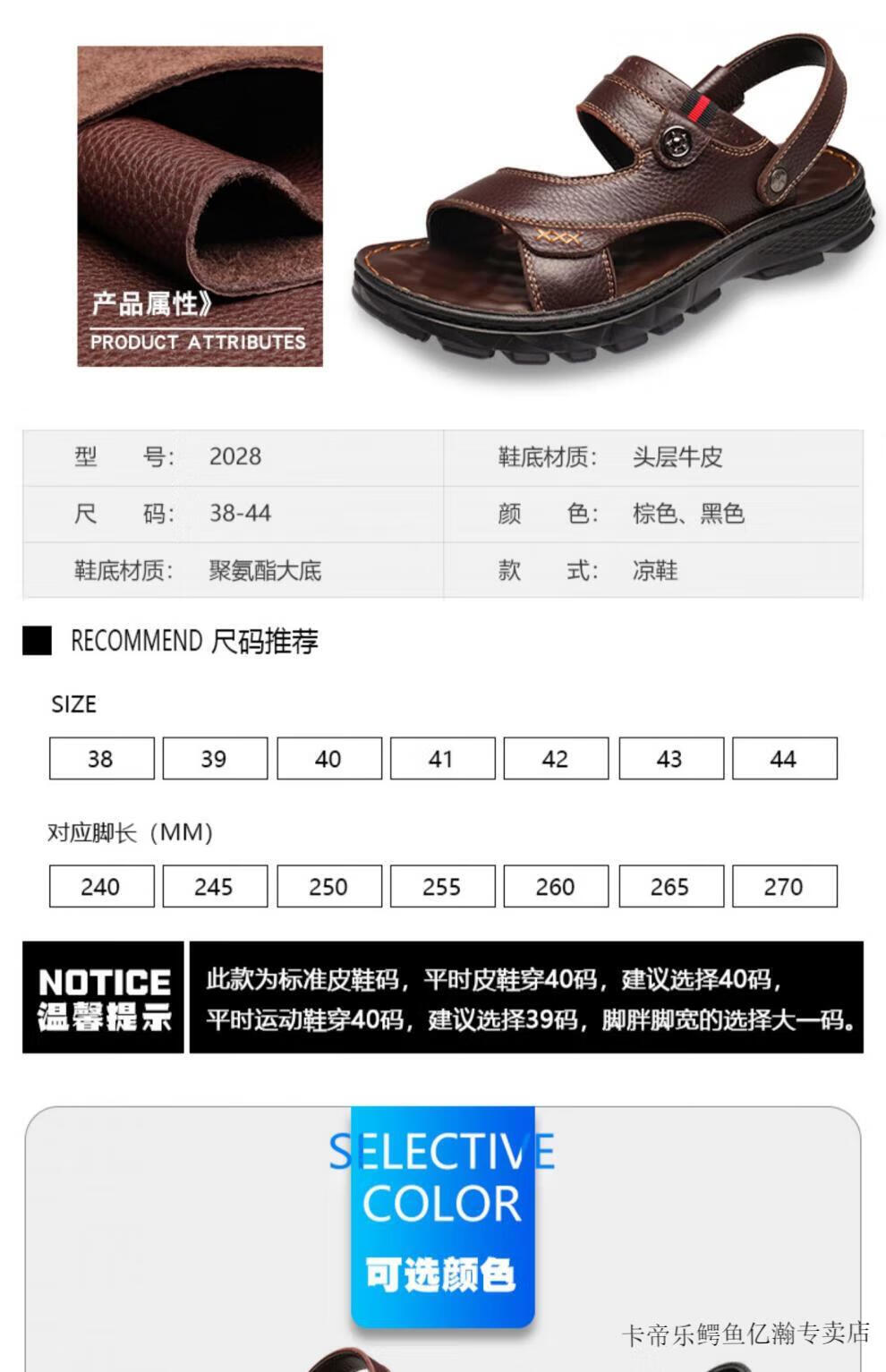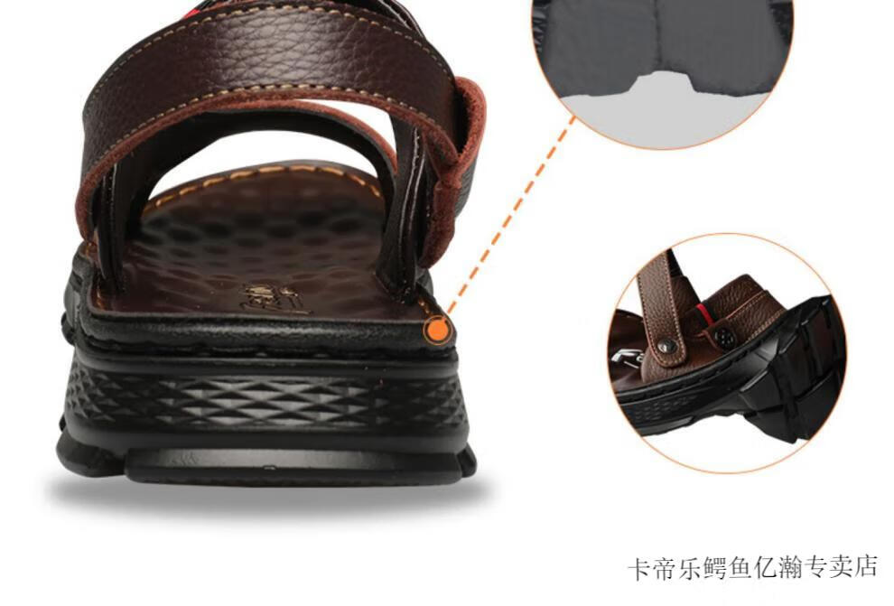 卡帝乐鳄鱼(CARTELO)凉鞋男夏季中年人爸爸真牛皮防滑厚底沙滩鞋男款4647大码凉拖鞋子 12129黄色厚底 大码鞋 透气不闷汗 45 透气不闷汗