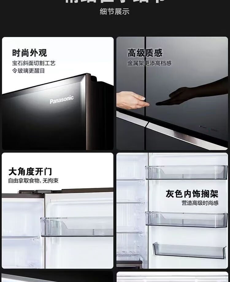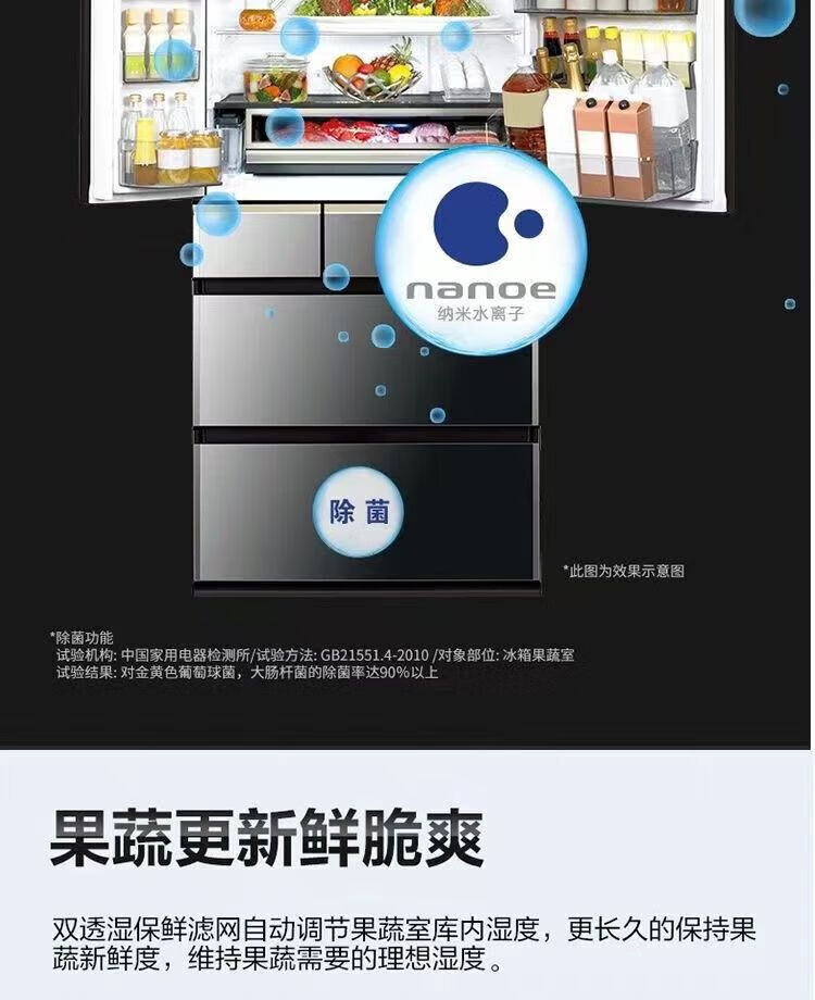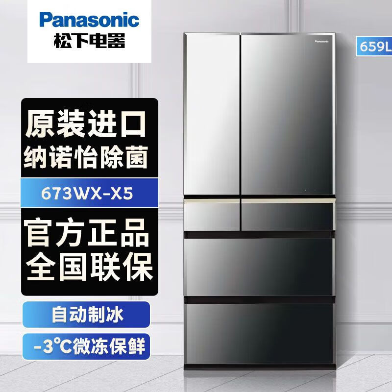 Panasonic NRF673WXX5 air-cooled mirror Nanoyi X deodorizing large-capacity refrigerator NR-F673WX-X5 agate black