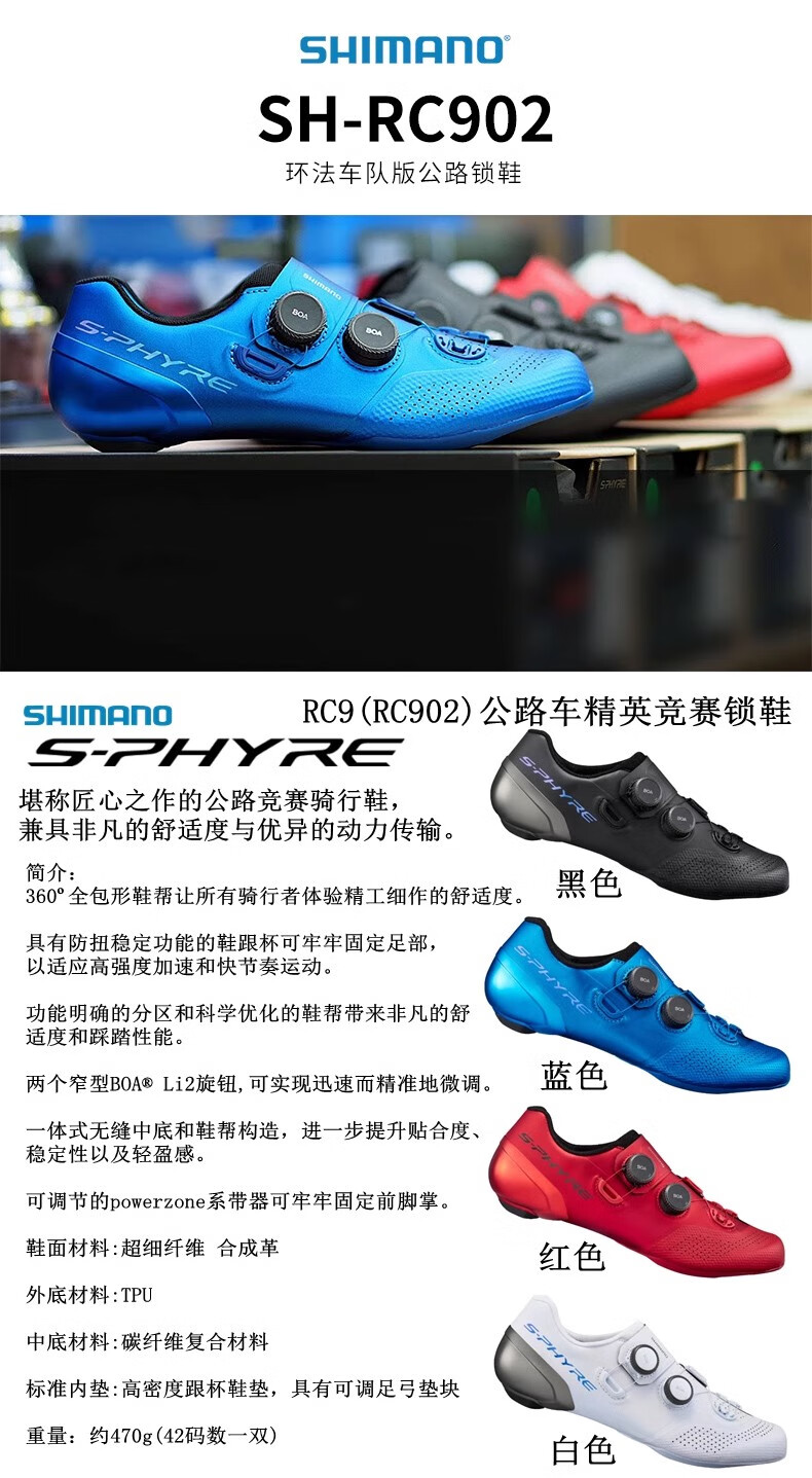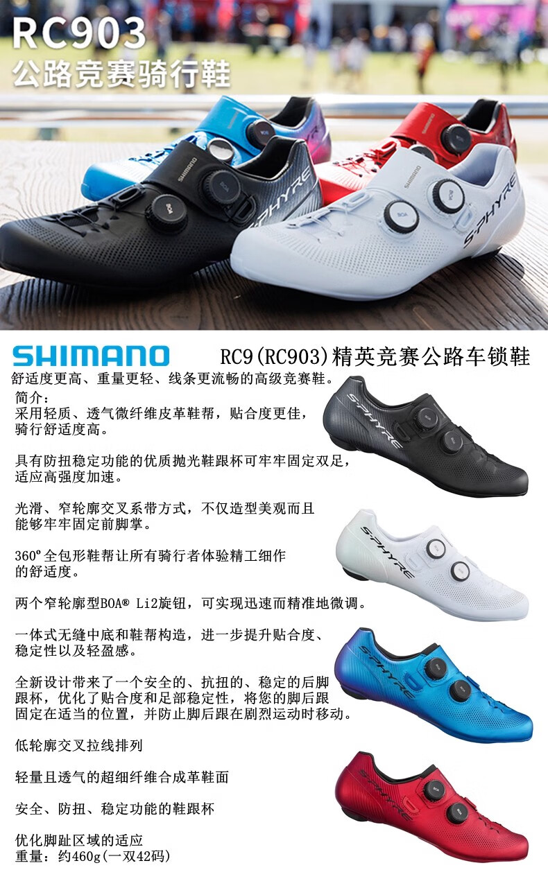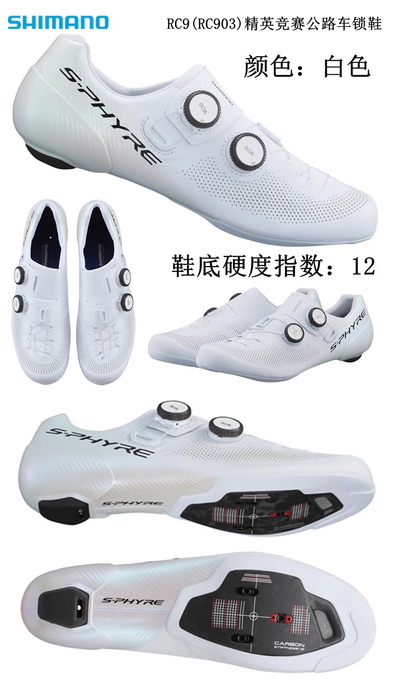 禧玛诺RC9公路车锁鞋 RC902骑行鞋RC903PWR冲刺款竞赛宽版 PWR冲刺款-RC903白色/宽版 43