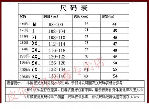 China (cm) 165 / 88-90 170 / 96-98 175 / 108-110 180 / 118-122 185 / 126-130