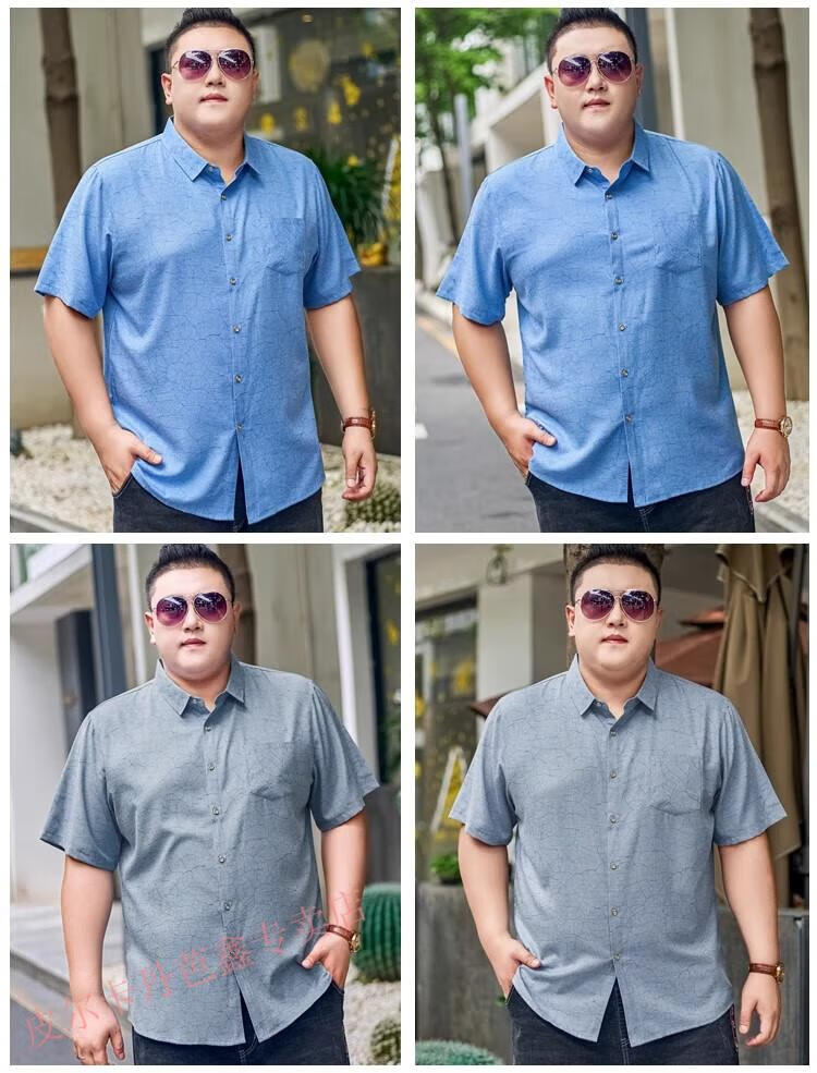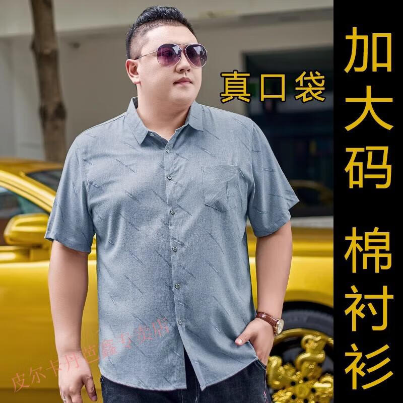 Pierre Cardin short-sleeved plus size shirt men's plus size men's cotton shirt loose thin printed large size men's half-sleeved fat man 5155 sky blue 2XL (recommended 140-155Jin Jin equals 0.5 kg)