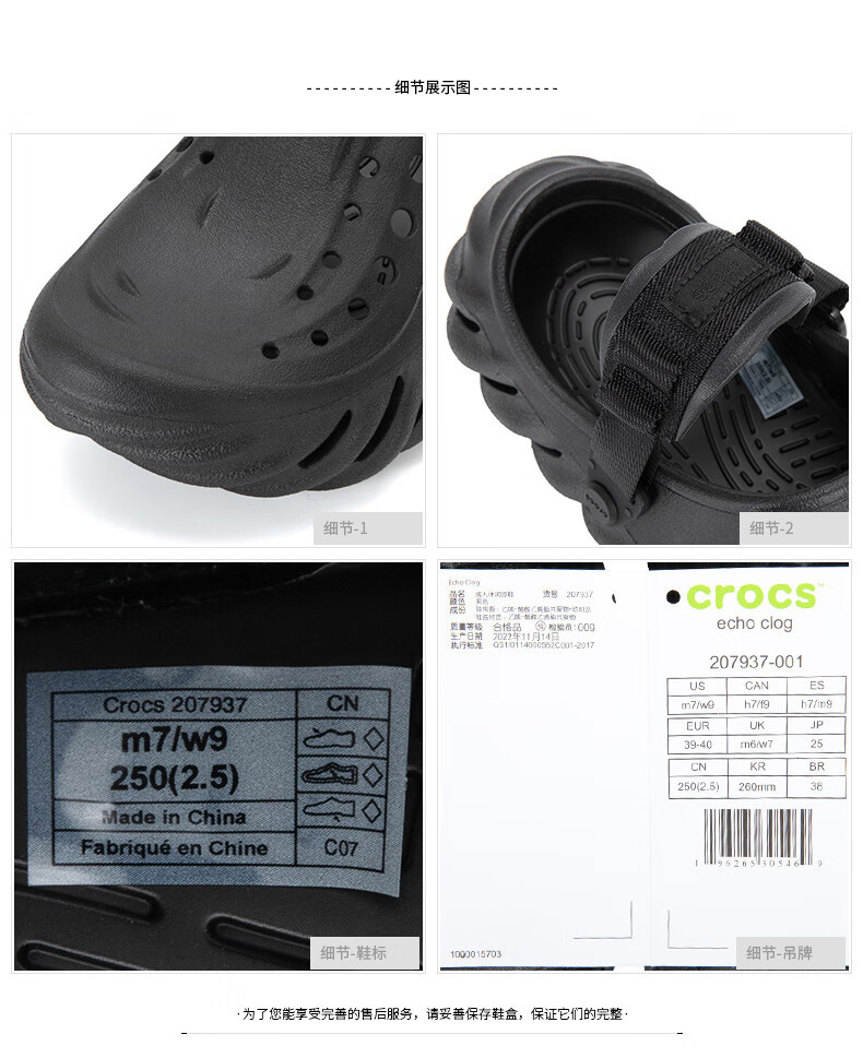 Crocs (CROCS) 2025 Herbst neue Bobo Cave Schuhe Herren und Damen Outdoor Strandsandalen Sport- und Freizeithausschuhe 207937-001/Posten Sie Bilder und senden Sie 10 42-43 zurück