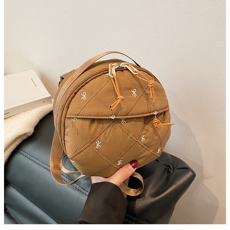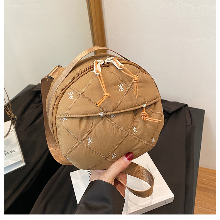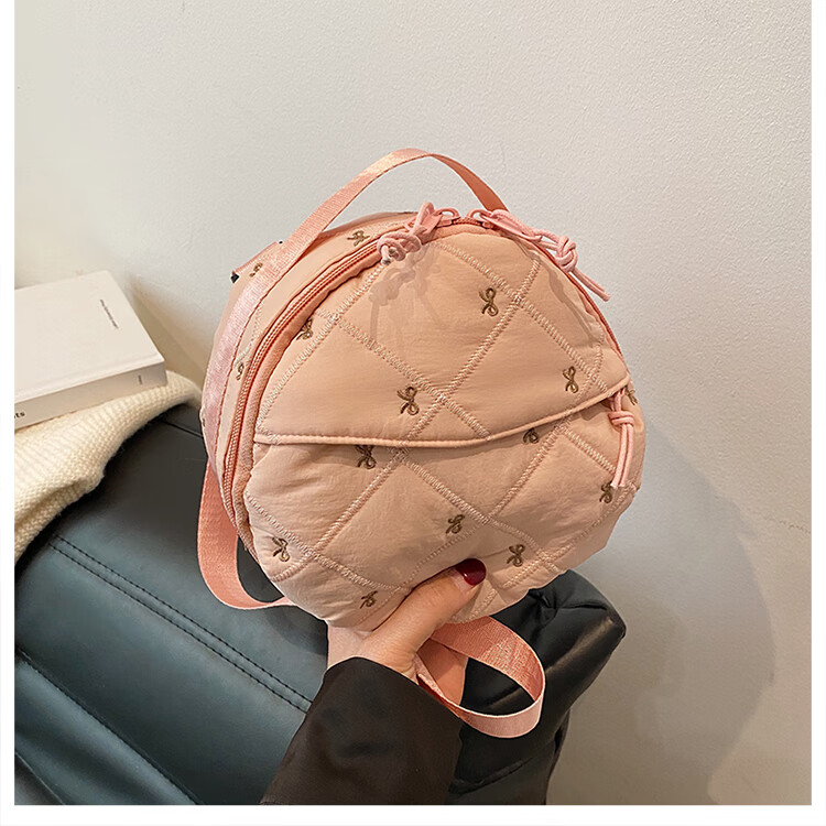 2025新款女士时尚单肩包圆饼包斜挎包百搭通勤包出行小圆包手提包 粉色