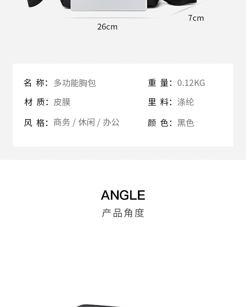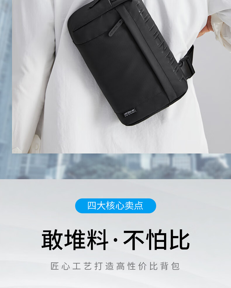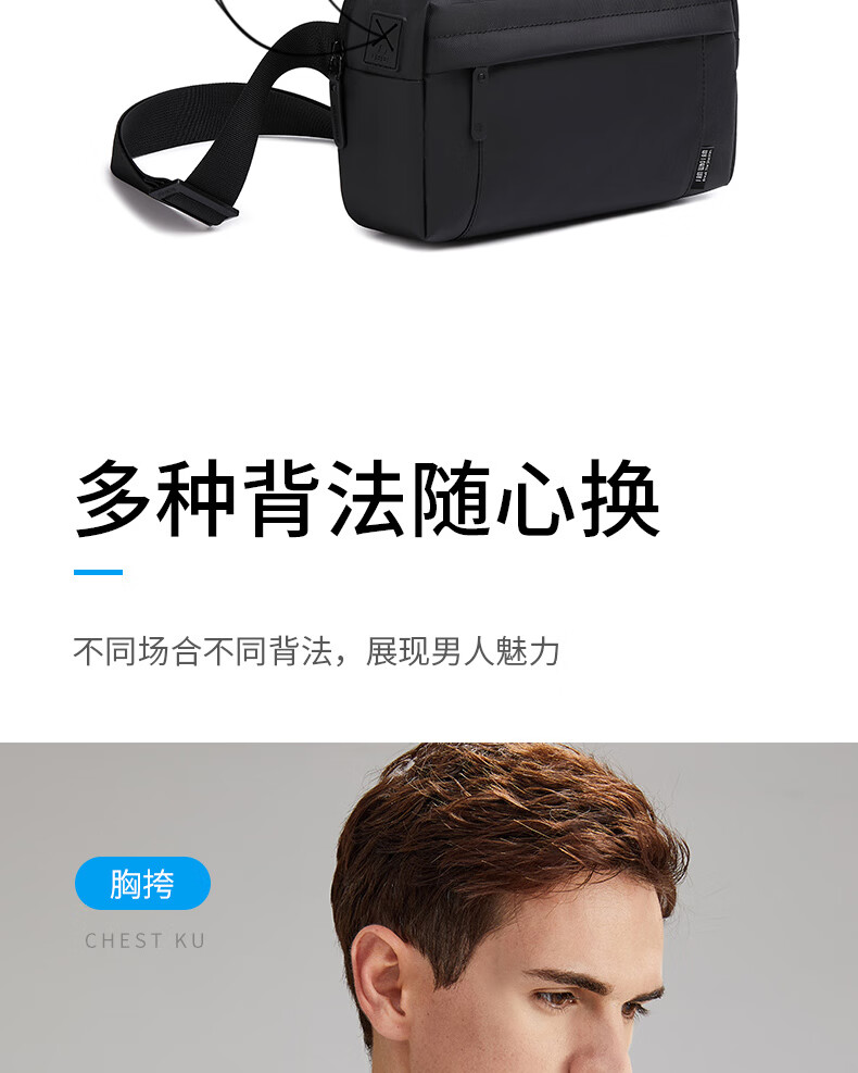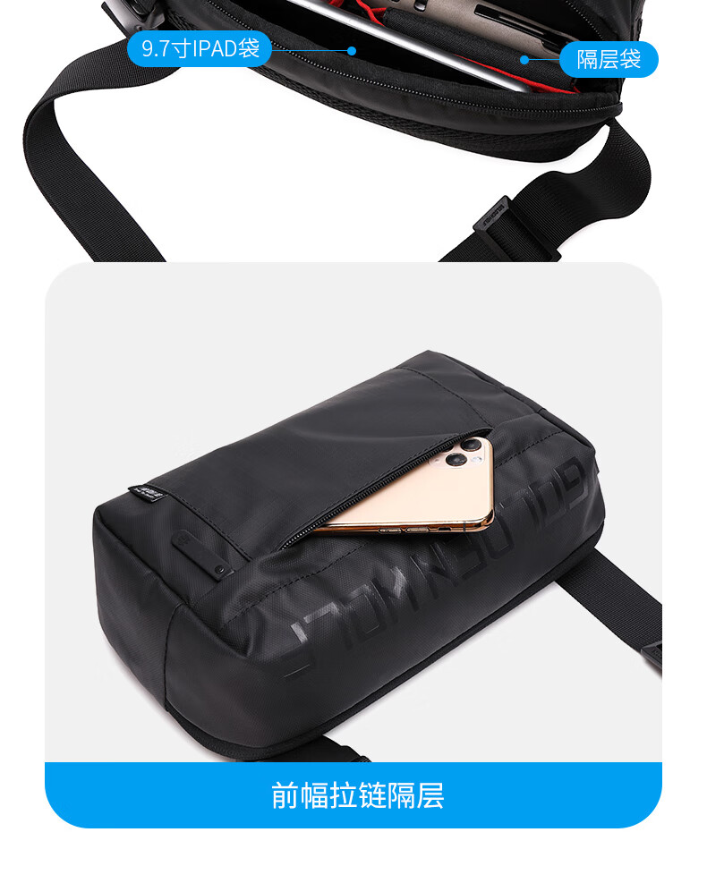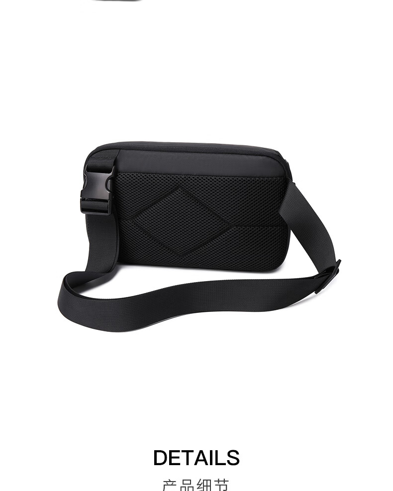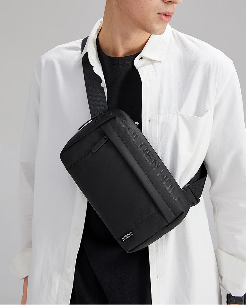新款男士胸包休闲防泼水高级感斜挎包时尚大容量多功能男款单肩包 黑色