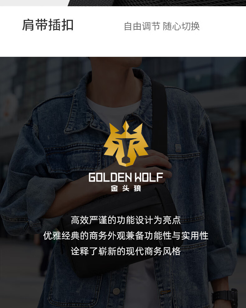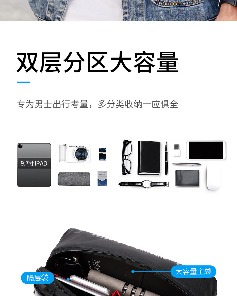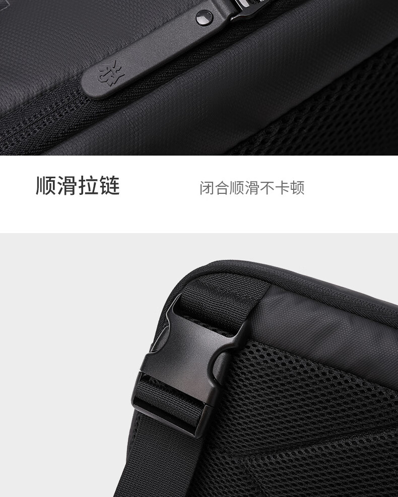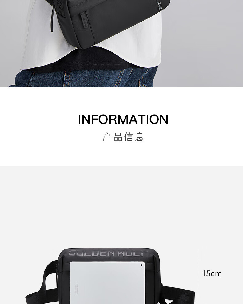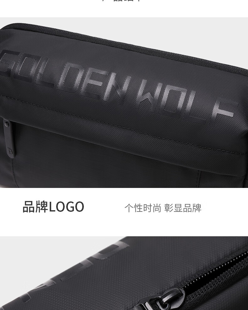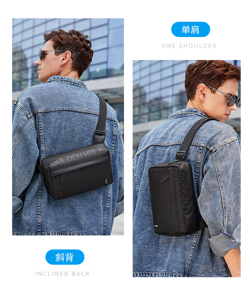新款男士胸包休闲防泼水高级感斜挎包时尚大容量多功能男款单肩包 黑色