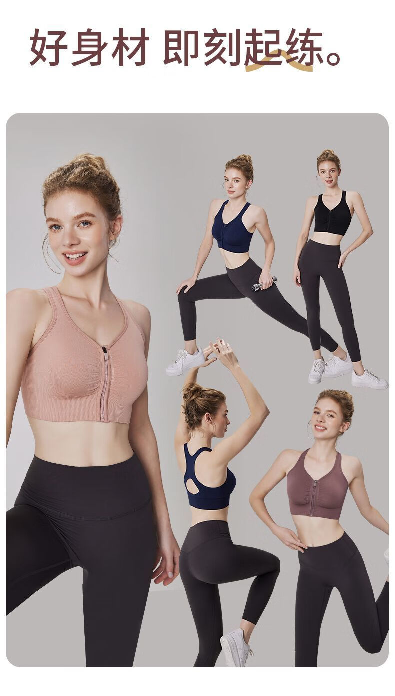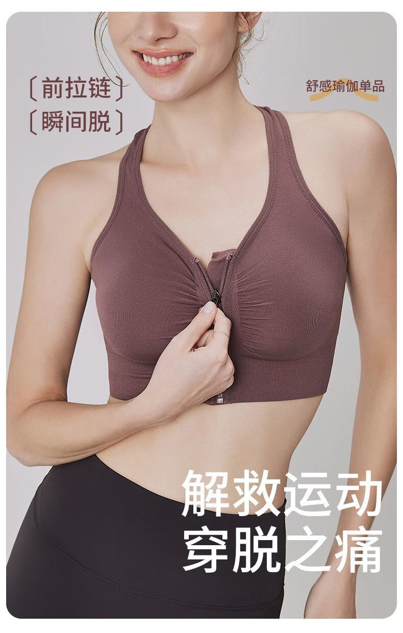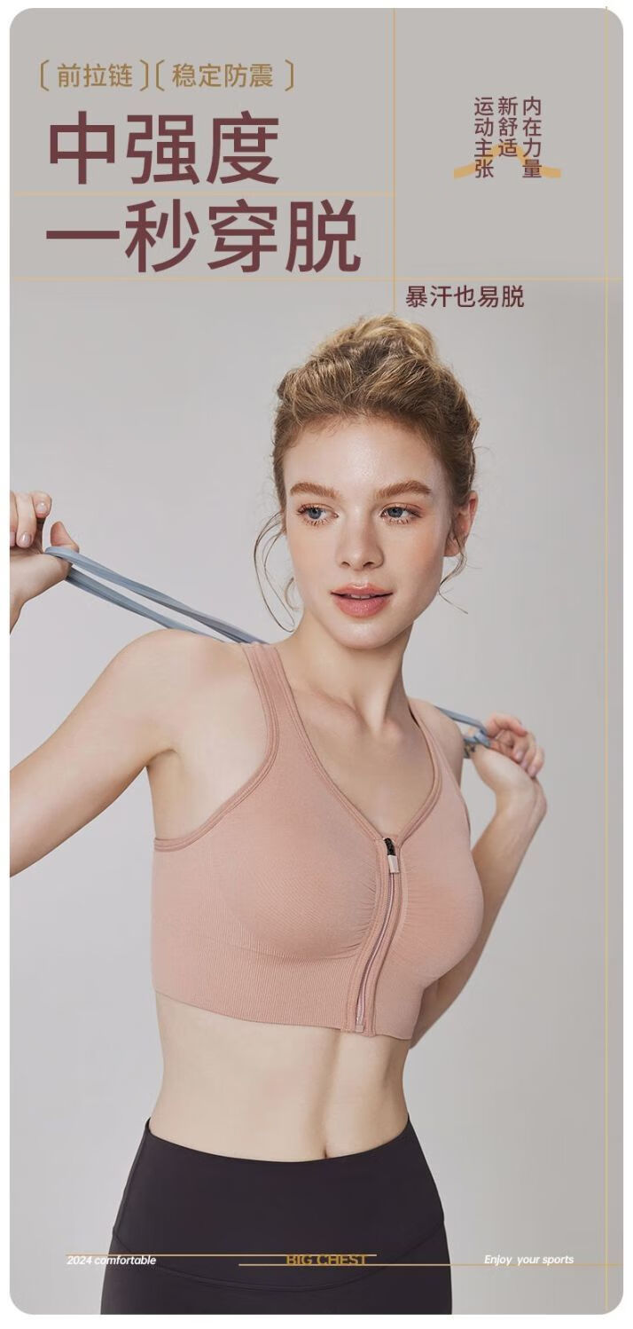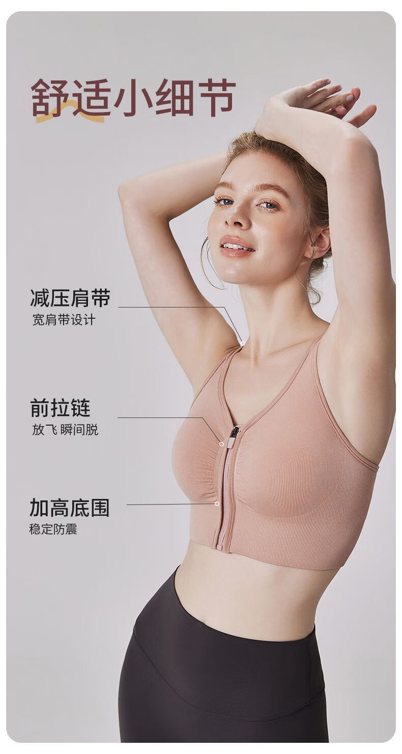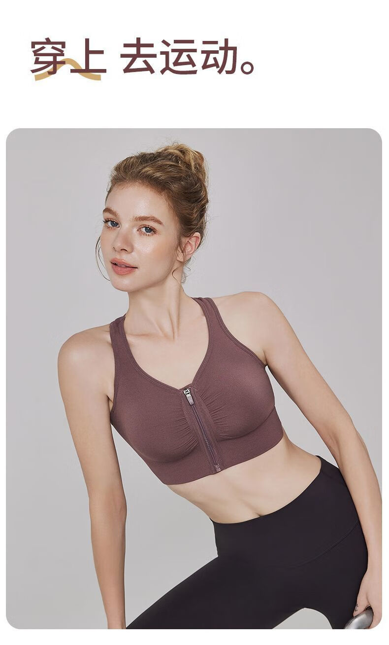 猫人(MiiOW)运动内衣女文胸防震防下垂高强度跑步跳绳军训瑜伽前拉链可外穿 【豆沙色+青色/2件装】 3XL (建议体重168-190斤)