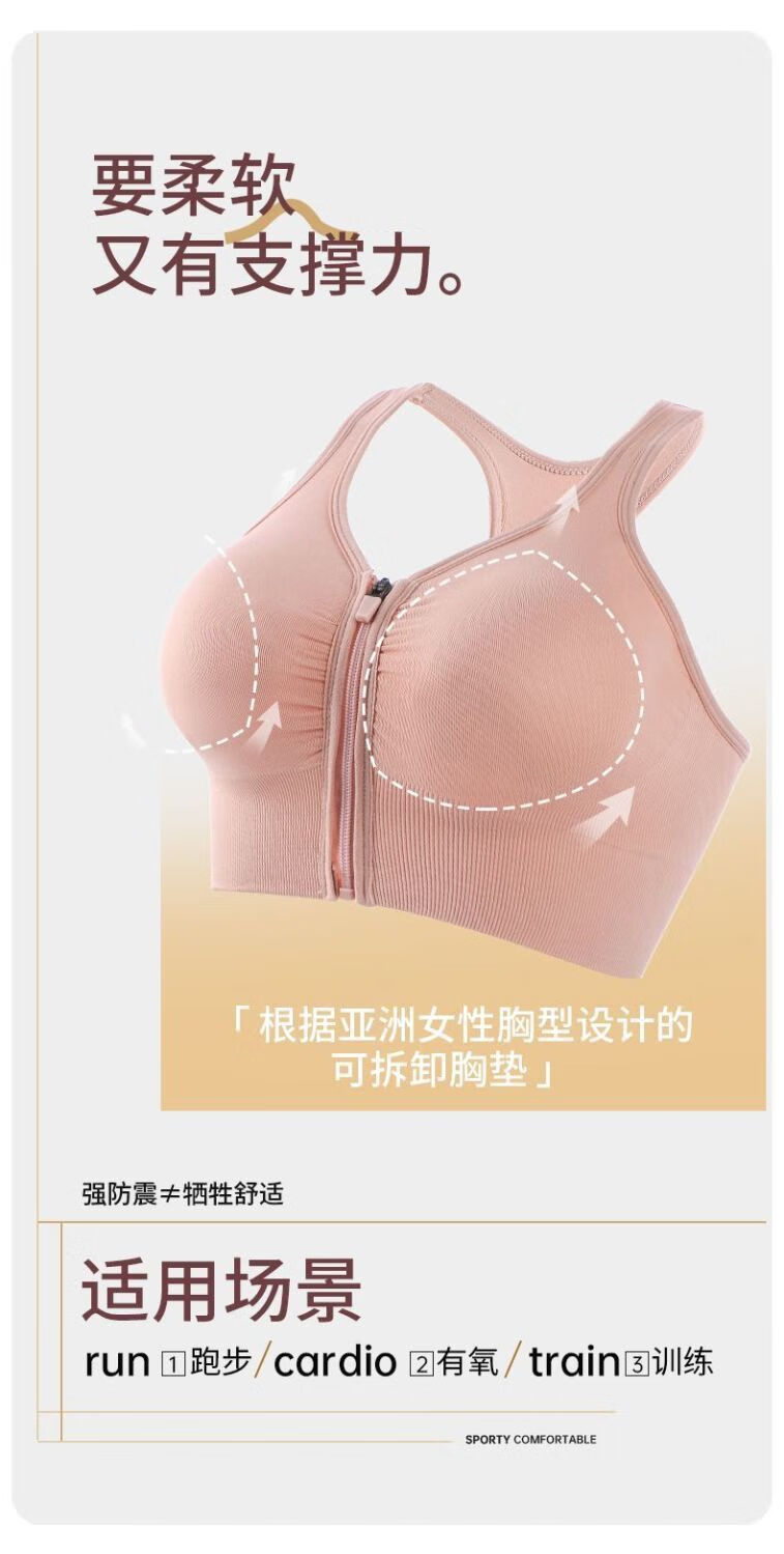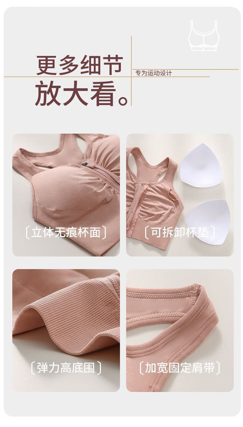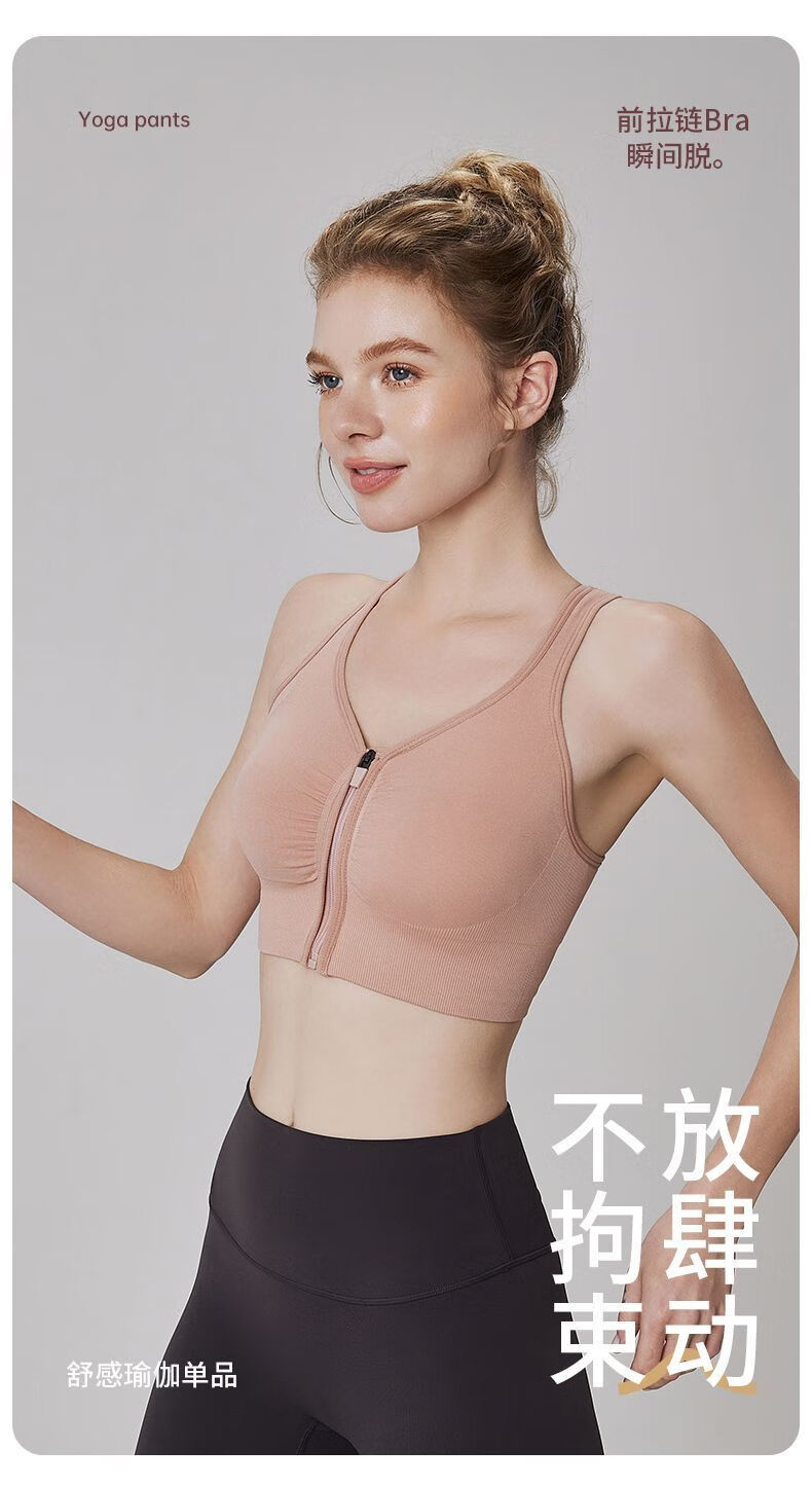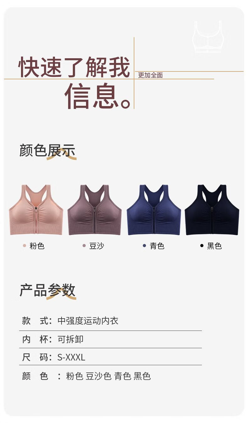 猫人(MiiOW)运动内衣女文胸防震防下垂高强度跑步跳绳军训瑜伽前拉链可外穿 【豆沙色+青色/2件装】 3XL (建议体重168-190斤)