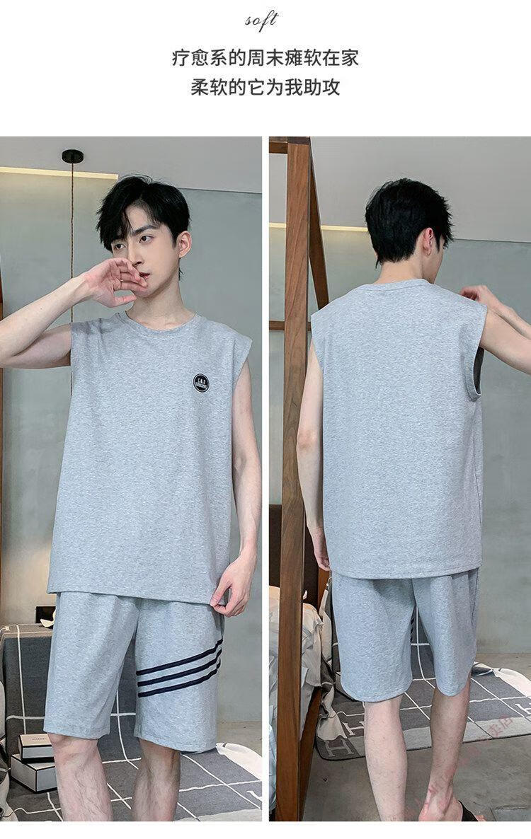 MiiOW einfarbiger Baumwollpyjama für Männer, Sommer, ärmellose Weste, Oberbekleidung, dünn, locker, groß, cool, kurzärmeliges Heimkleidungsset 9928 # Kurzarmshorts L empfohlen 100-125 Jin Jin entspricht 0,5 kg